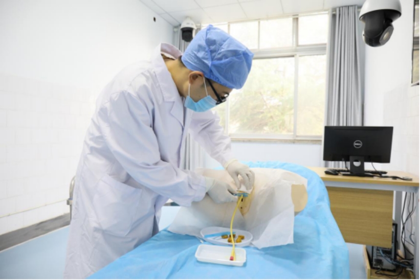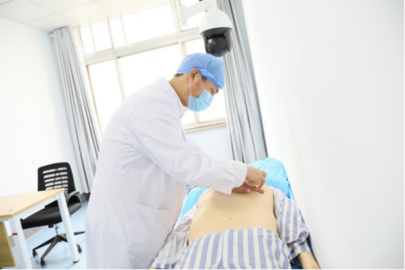 4.内科实训室(1):拥有临床穿刺仿真训练平台、胸腔穿刺模型、腹腔穿刺模型、腰椎穿刺模型、骨髓穿刺模型、气胸处理模型、胸腔穿刺引流模型、腹膜透析模型、脊椎穿刺模型、多功能透明洗胃模型、高级综合穿刺术与叩诊检查技能训练模拟人等设备,固定资产总值179万元。能开展胸腔穿刺、腹腔穿刺、心包穿刺等实训项目的教学、练习和考核。穿刺模型高度仿真,有语音提示,学生可反复训练,有利于提高穿刺技能,提升岗位胜任力。