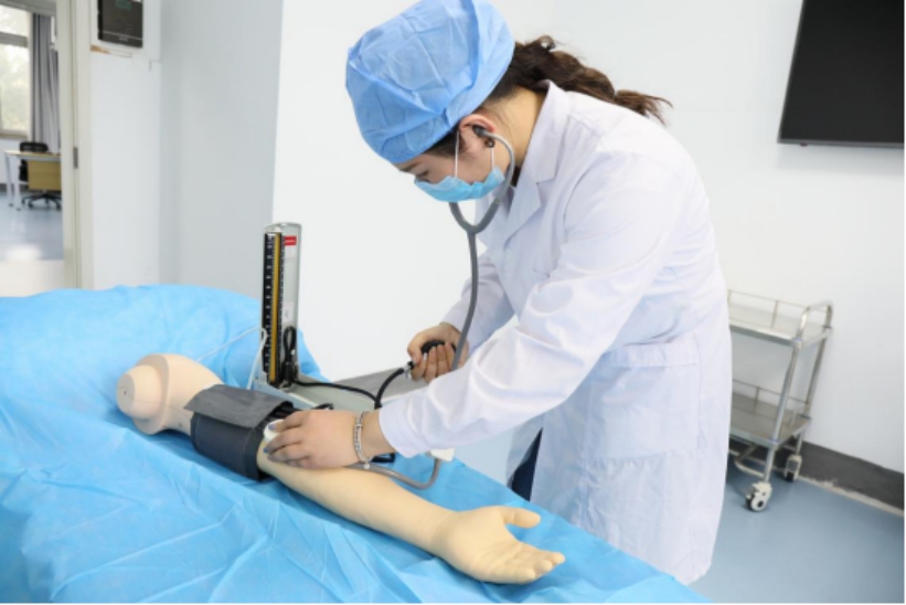 3.检体诊断室:拥有高级诊查床、腹部触诊模型、心肺听诊触诊模拟人、高级手臂血压测量训练模型等设备,固定资产总值18万元。能开展生命体征测量、头颈部检查、胸部检查、腹部检查、神经系统检查等体检项目的教学、练习和考核。检体诊断是每一位医师都必须熟练掌握的最常用、最基本的诊断方法,通过学习,学生可熟练掌握各种检查手法,有利于将来临床工作的有效开展。