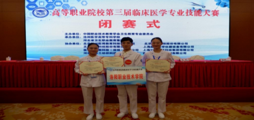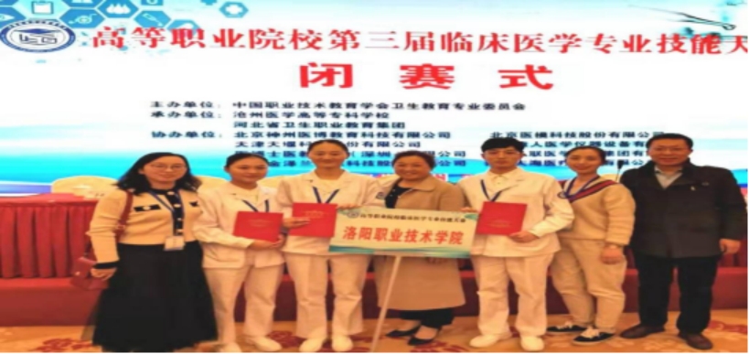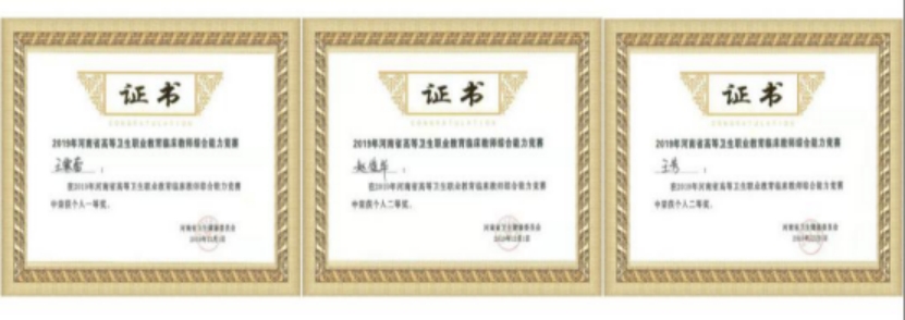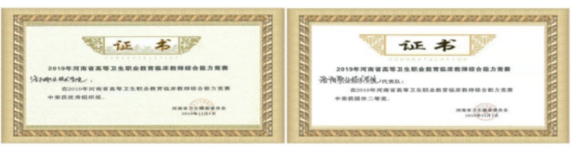 勇创佳绩河南省卫健委于11月29日-12月1日举办了2019年全省首届高等职业院校临床医学专业教师综合能力竞赛。此次竞赛由全省开办临床医学专业的14所专科学校的42名选手参赛,我院王霖蕾老师获个人一等奖,赵俊华老师和王芳老师获个人二等奖,我院荣获团体二等奖和优秀组织奖。