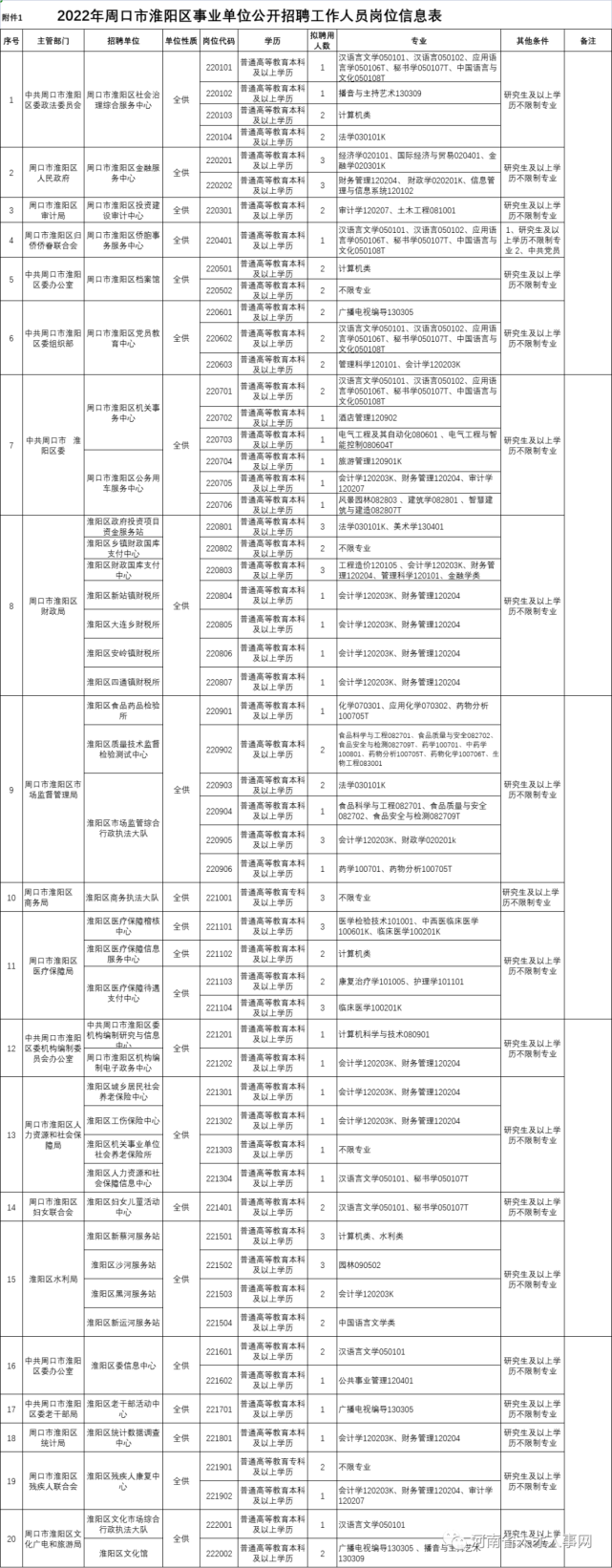 4.符合岗位要求的专业、学历等相关条件,具体要求详见《2022年周口市淮阳区事业单位公开招聘工作人员岗位信息表》