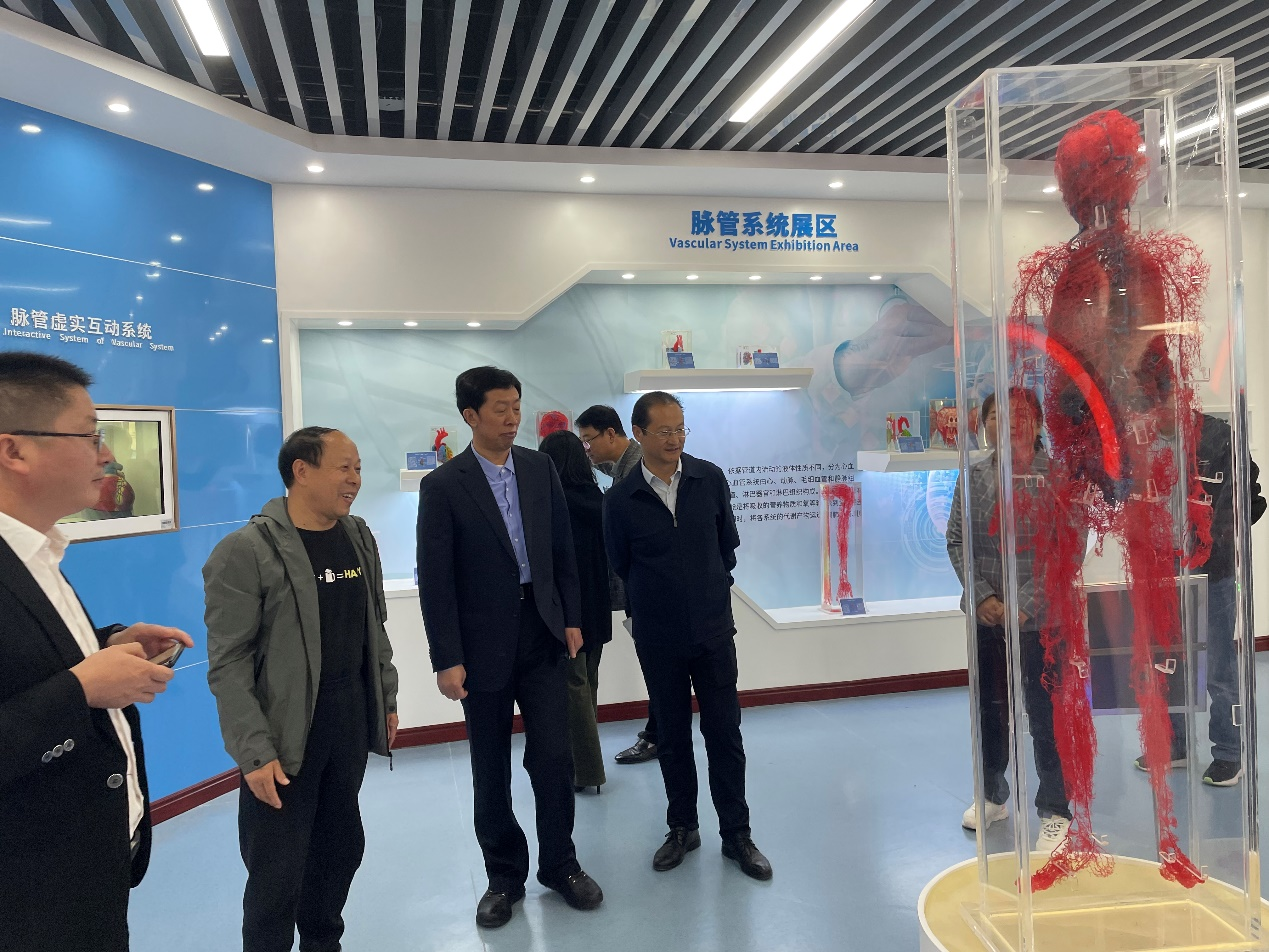 随后,吴国新一行到达生命科学与健康教育馆进行实地参观考察,生命科学与健康教育社团的学生代表对到访领导进行讲解接待,在生命进化馆学生代表带领各位领导一起探索生命奥秘,领略生命之美。在生命进化馆可以深入了解到生命起源与进化的神奇力量。在人体奥秘馆,该馆以“健康生活,科学防护”为主题,也被称为医学生的第二课堂,做到课本、标本相结合,观察实体更能深刻的了解人体器官的相关知识,学好医学相关的所有知识。面向大众时也能更好的宣传科普有关健康的知识,倡导大家做好自己健康的第一责任人!