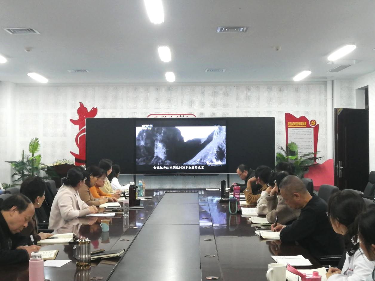 习近平总书记强调:“南水北调工程功在当代,利在千秋。”南水北调中线一期工程全面通水以来,经济、社会和生态效益明显。在南水北调工程建设中所形成的南水北调精神是社会主义核心价值观的集中体现,是民族精神和时代精神的生动实践。党课伊始,全体党员观看南水北调工程视频。
