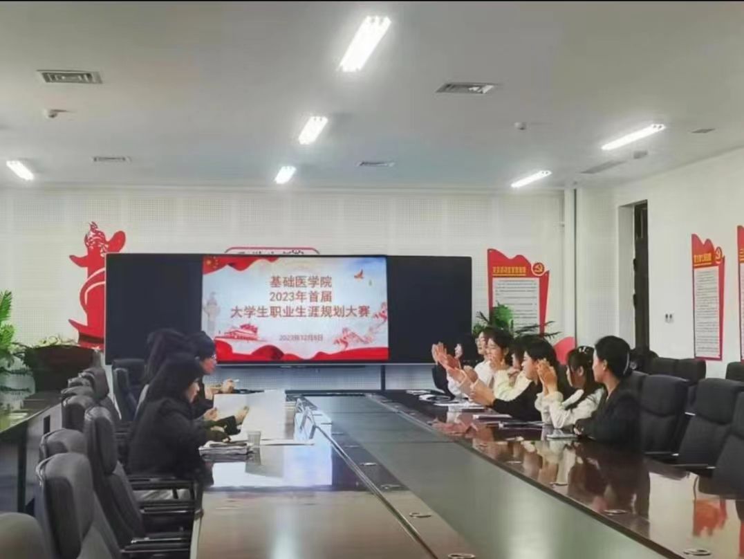 为促进大学生职业生涯规划教育和实践相结合,提升大学生的职业规划意识,培养大学生的社会责任感和创新精神,引导大学生树立正确的成才观、就业观,基础医学院于12月8日中午2:30在8号实训楼213举办了的基础医学院大学生职业规划大赛决赛。大赛分成长赛道和就业赛道分开进行。