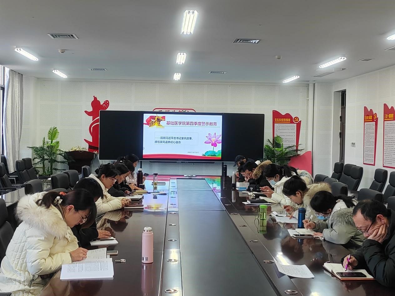 为深入学习贯彻党的二十大精神和习近平总书记关于家庭家教家风建设的重要论述精神,引导全体党员构建形成向上向善向廉的良好家风,2023年12月21日下午,基础医学院开展了“树立廉洁家风 筑牢廉政防线”警示教育活动,会议由教工党支部书记符晓曼主持,全体党员参会。