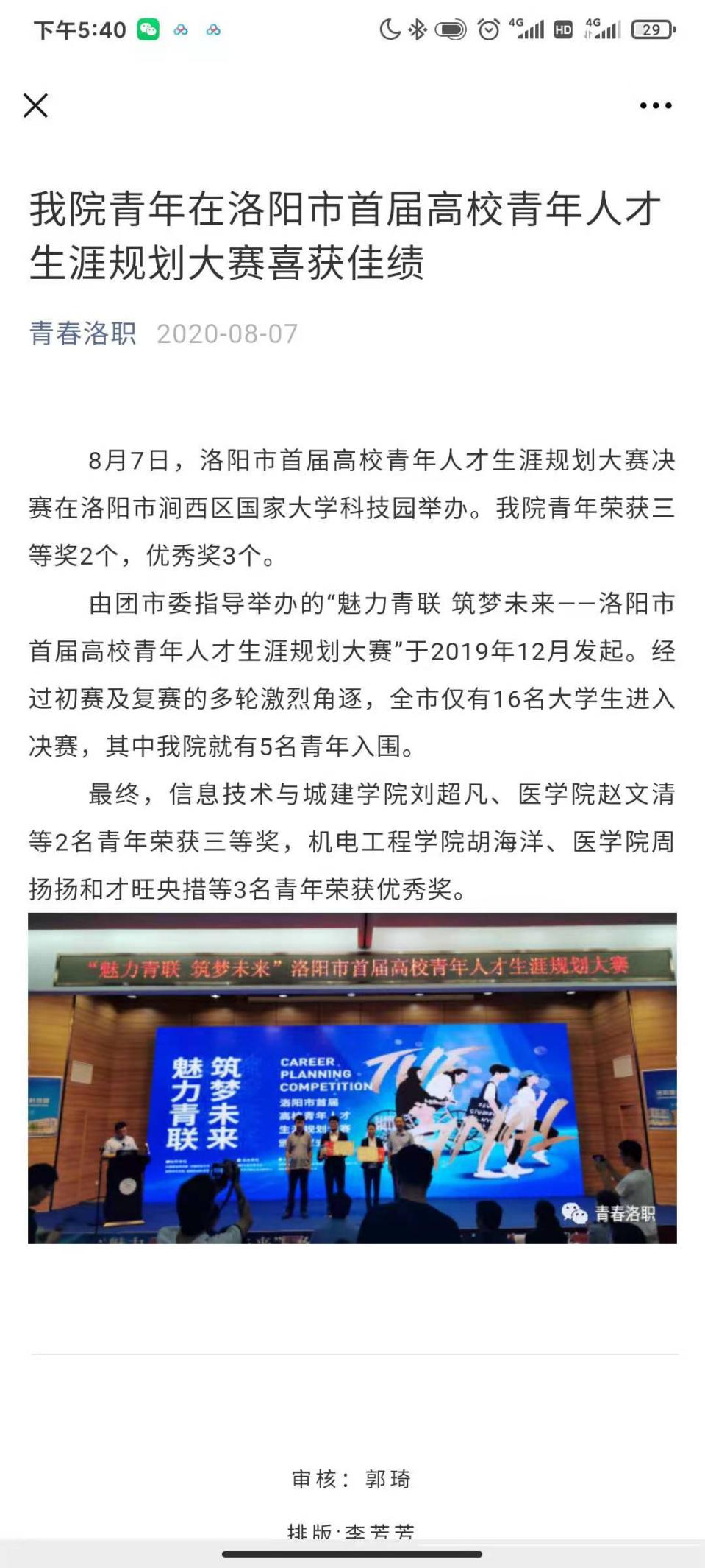 2020年8月,洛阳市人才生涯规划大赛,赵文清三等奖才旺央措,优秀奖;周扬扬,优秀奖