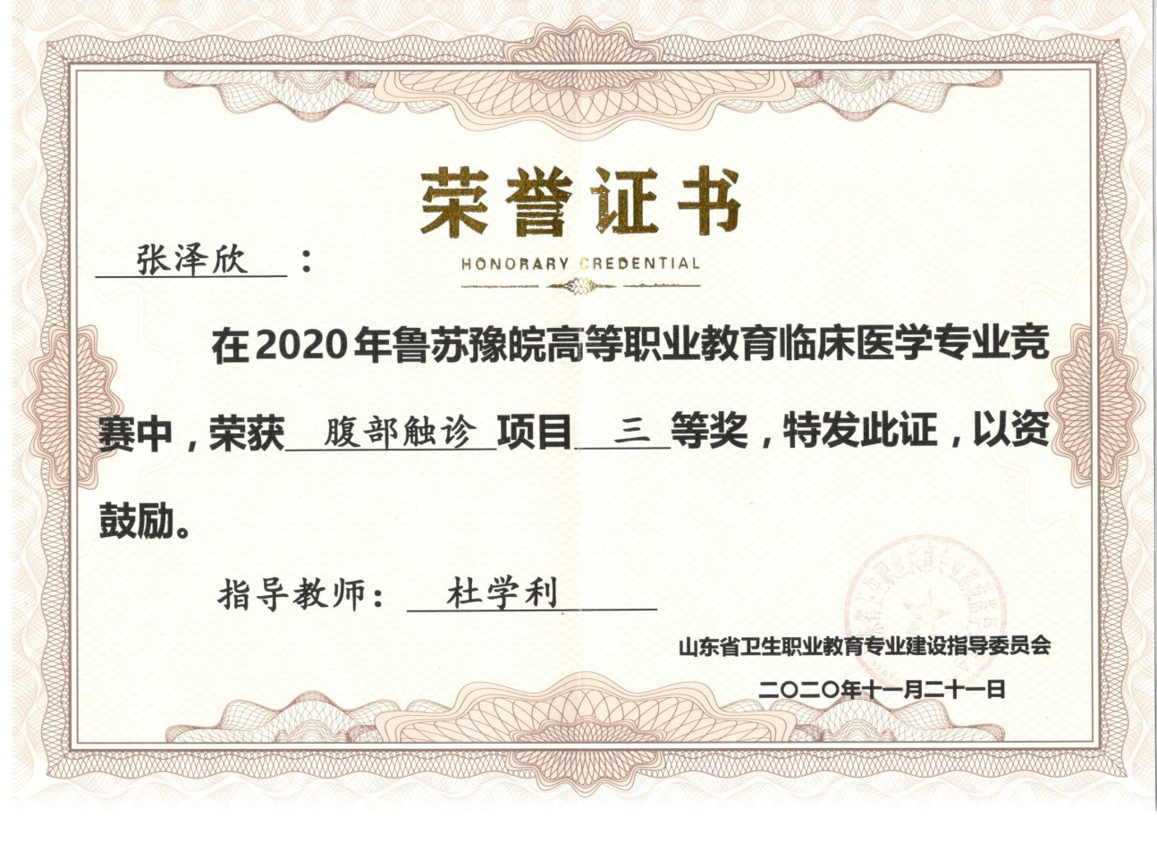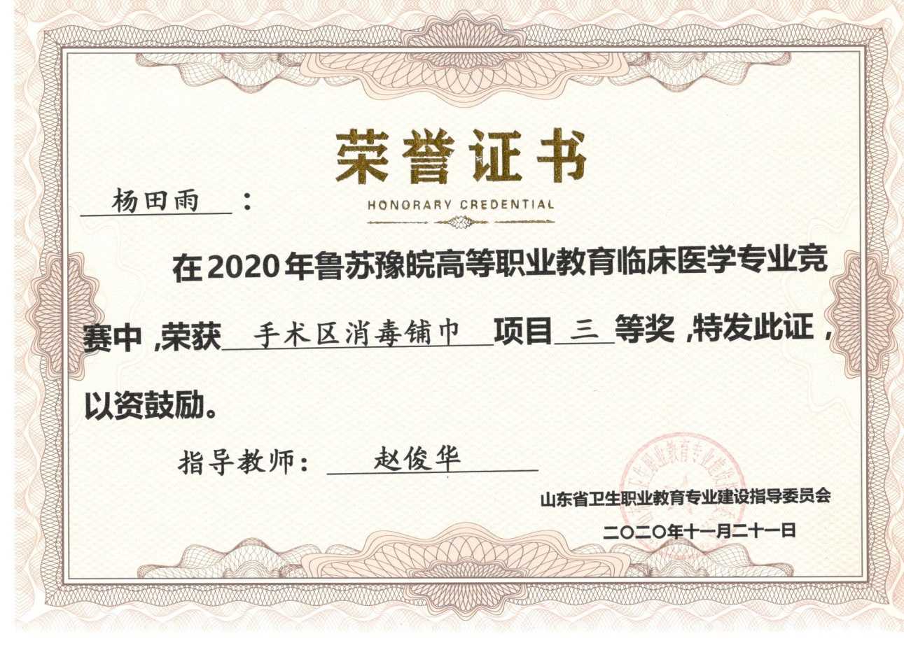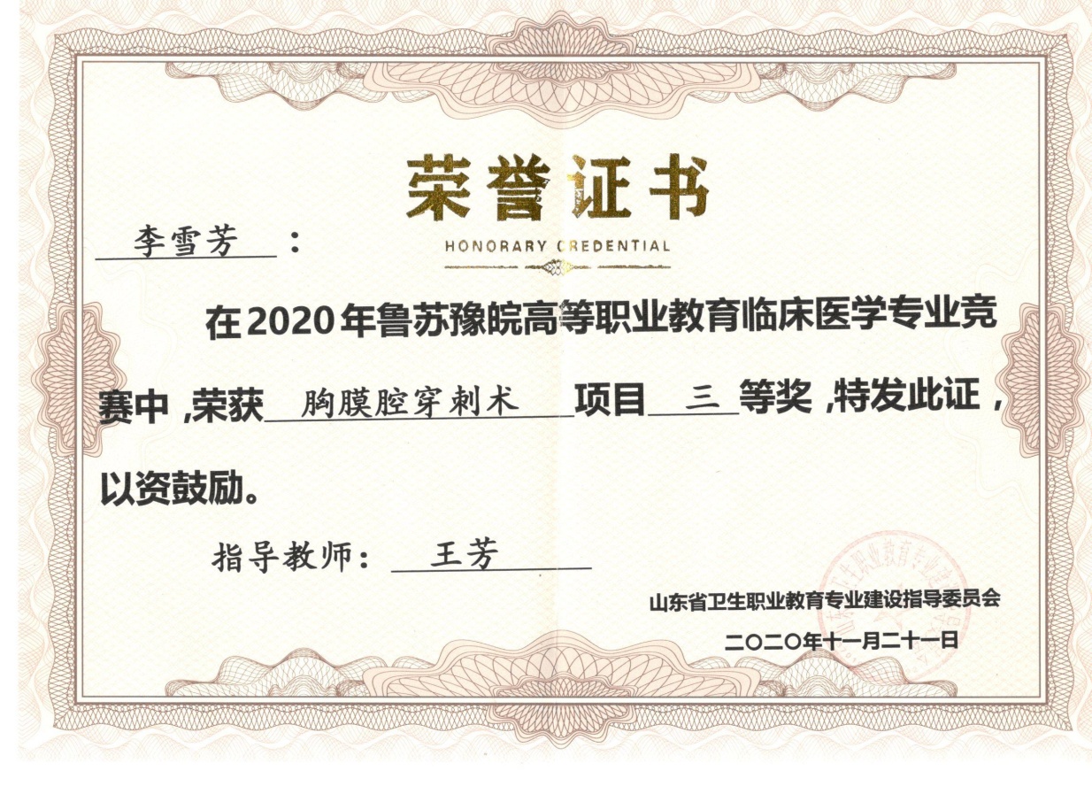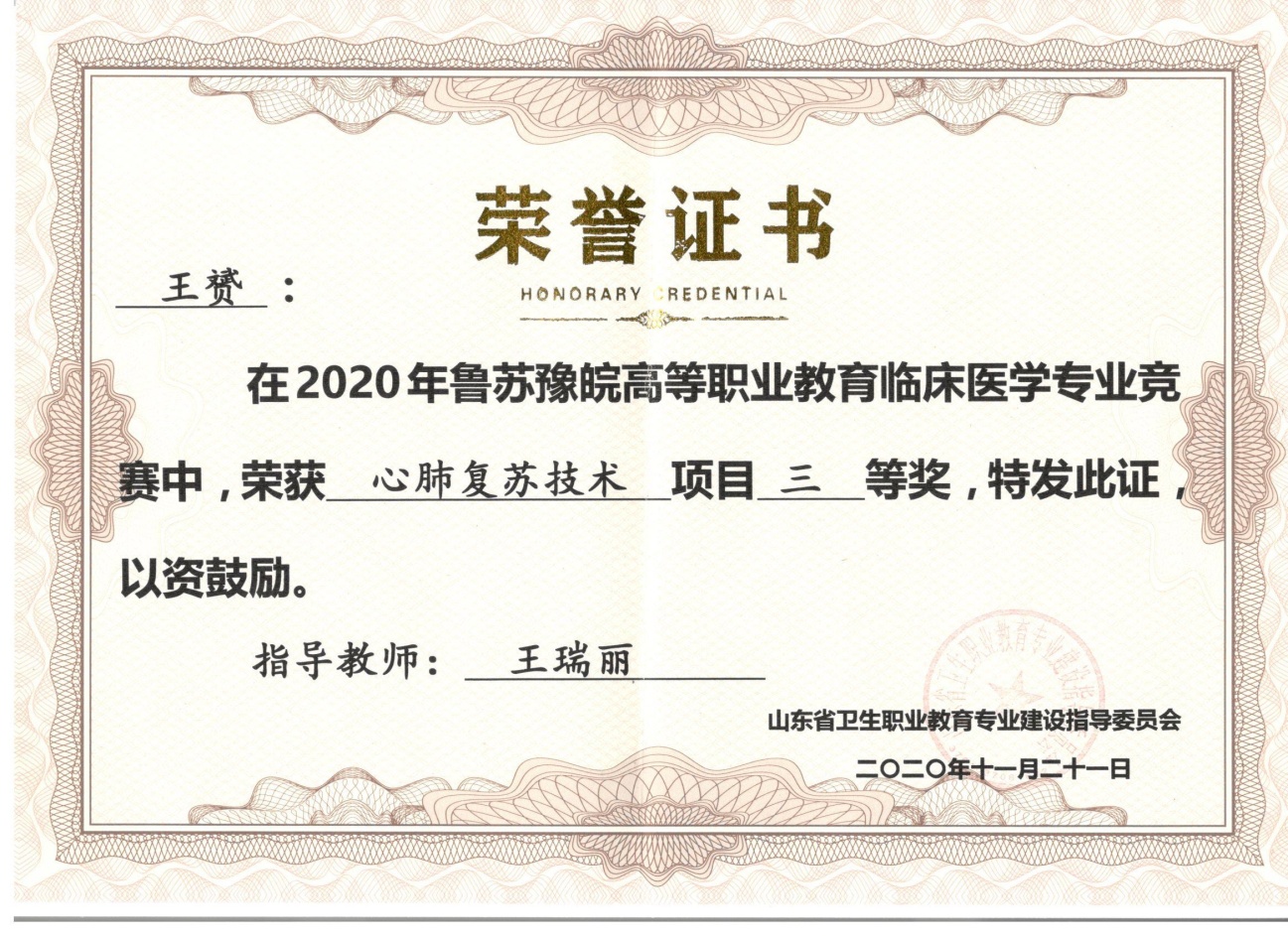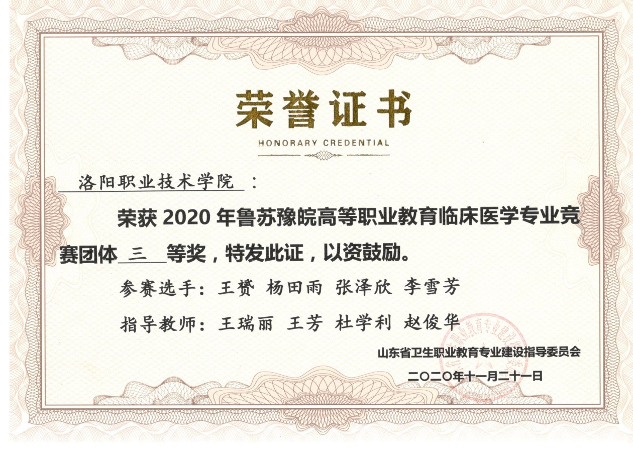 2020年11月参加鲁苏豫皖高等职业教育临床医学专业技能竞赛获奖情况