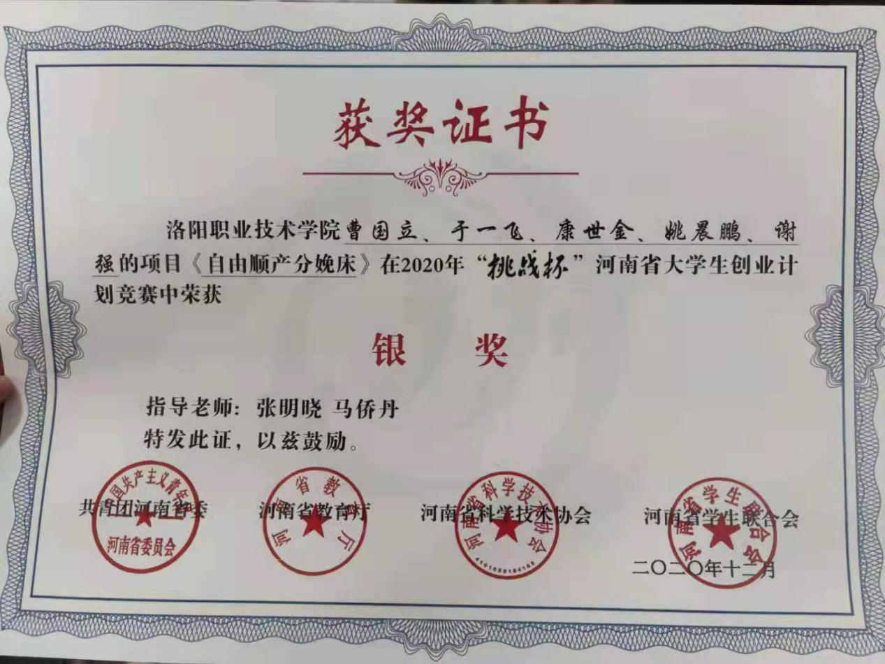 “挑战杯”河南省大学生创业计划竞赛银奖