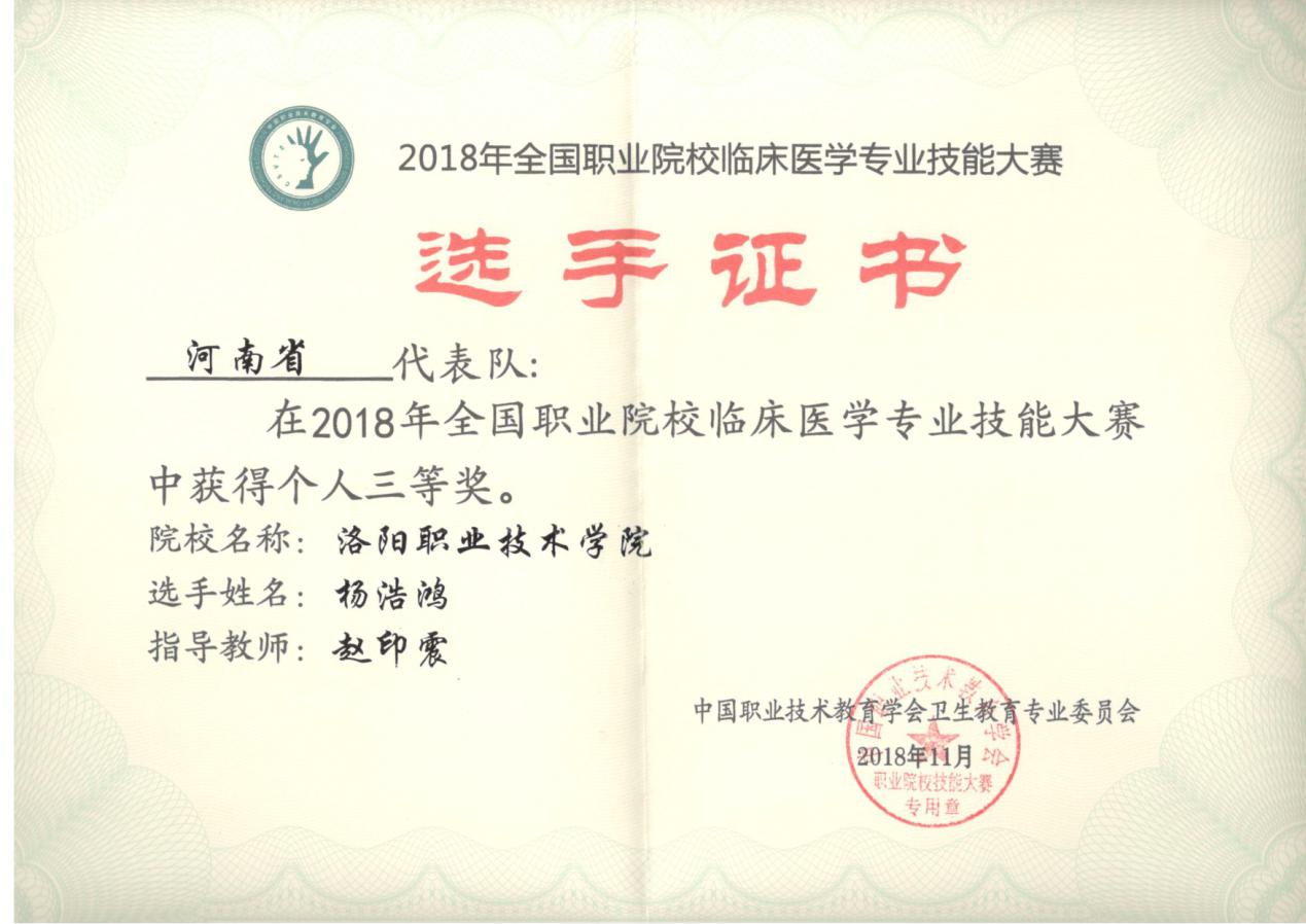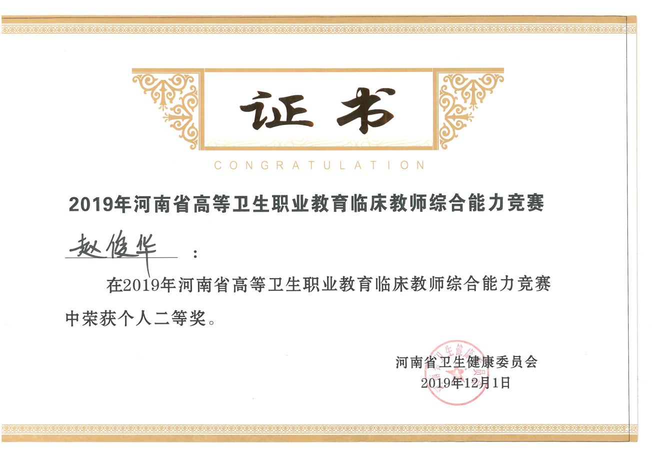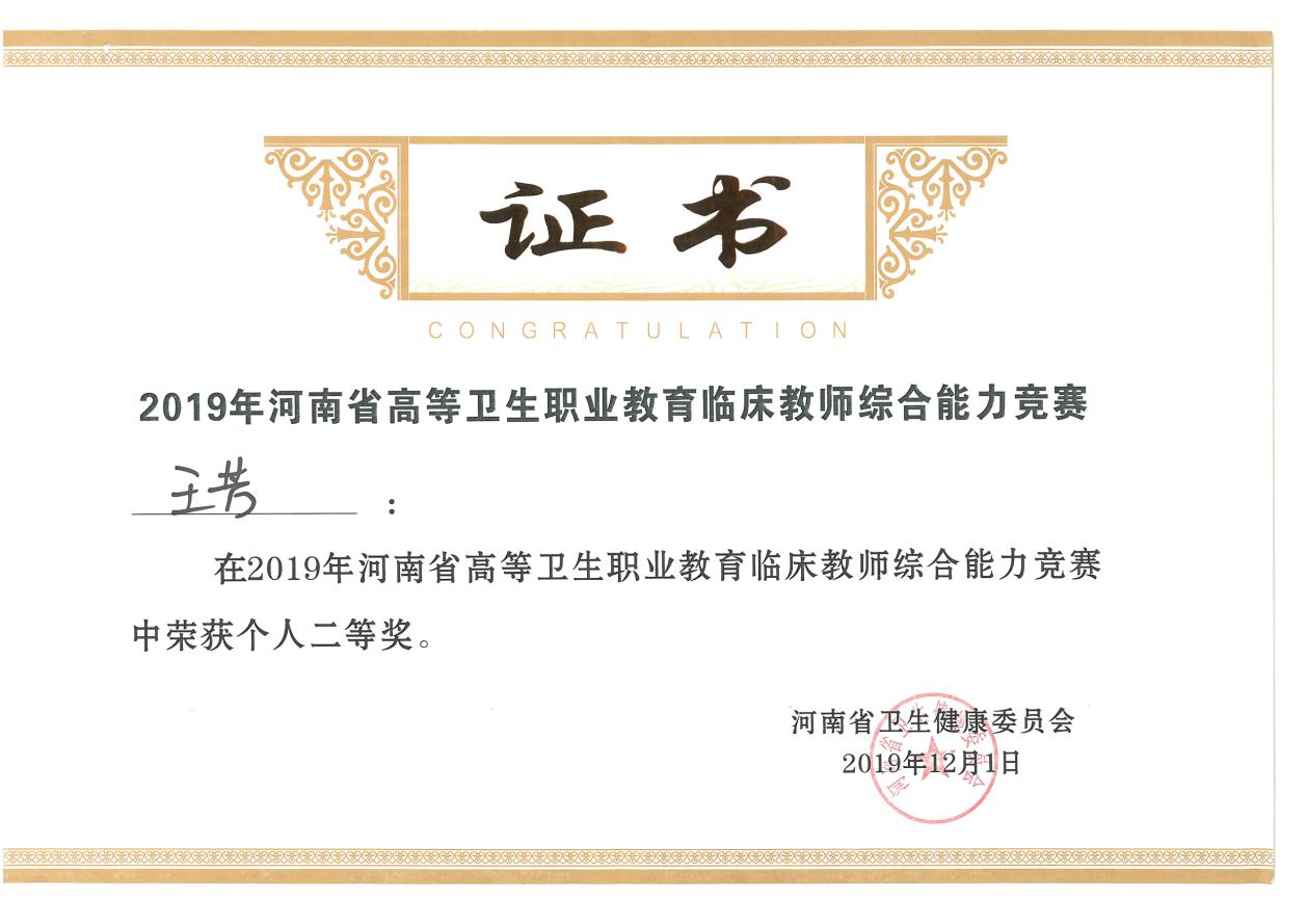 医学院王霖蕾、赵俊华和王芳参加2019年河南省高等卫生职业教育临床教师综合技能竞赛,成绩突出,分别荣获一等奖、二等奖、二等奖。