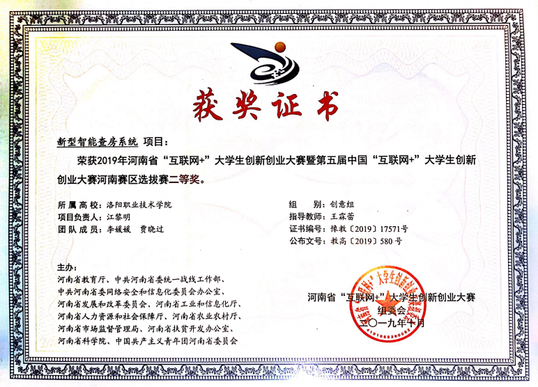 2019年河南省“互联网+”大学生创新创业大赛职教赛道比赛暨第五届中国“互联网+”大学生创新创业大赛职教赛道河南赛区选拔赛,获得二等奖