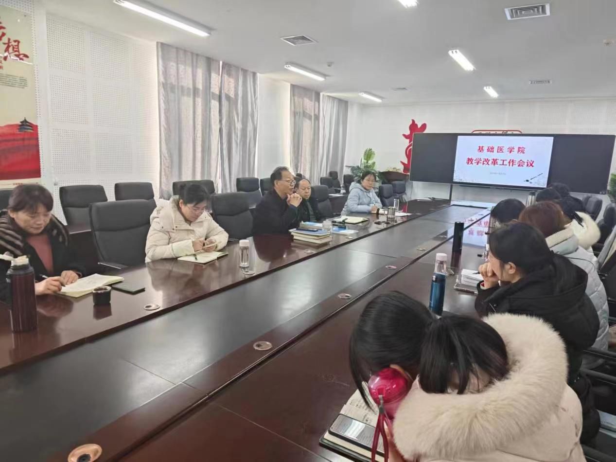 2024年1月23日上午,基础医学院召开了教学改革工作会议。基础医学院党总支书记崔颜宏、院长赵印震、教学副院长杜学利、临床医学专业带头人孙建勋教授、专业负责人、全体教研室主任参会,教学科研办公室主任牛小艳主持会议。