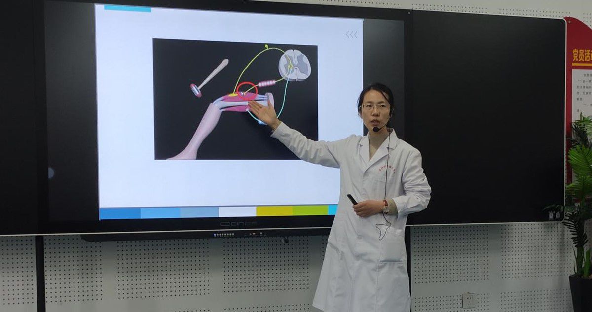陈歌、杜学利两位教师进行示范教学。基础医学组的陈歌老师主讲《肌细胞的收缩功能》,整个课堂教学目标明确,重难点突出,衔接流畅,通过运用动图、微视频等,使抽象的教学内容具体化、清晰化,助力课堂教学提质增效。临床医学组的杜学利老师主讲《黄疸》,通过运用案例教学法、图例法和思维导图等,将理论知识点有机融入课程案例中,并善于运用启发式教学和讨论教学,引导学生主动思考,激发学生的学习创造力。