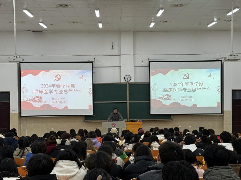 3月4日,基础医学院在5-410教室开展2024年春季学期临床医学专业思想教育大会,基础医学院副院长杜学利、临床医学专业带头人王冬晓出席本次会议,22级临床医学专业全体学生参会。