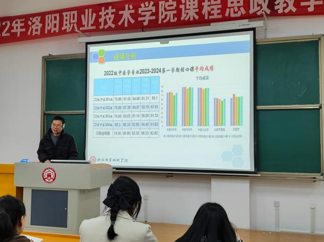 会上任京龙对2023-2024学年第一学期核心课的平均成绩做出分析。随后,对同学们提出专业学习上的改进建议,督促学生复习巩固中医基础知识,培养临床思维能力,树立学生职业认同感和社会责任感。