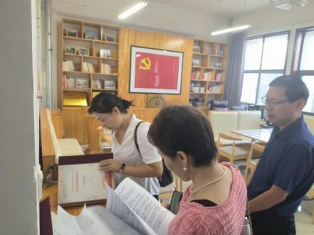 在河南科技大学园艺与植物保护学院党委书记白国林的带领下,崔颜宏一行人参观了该学院“双带头人”教师党支部书记工作室,査览相关筹建材料,并请教创建思路和落实措施。