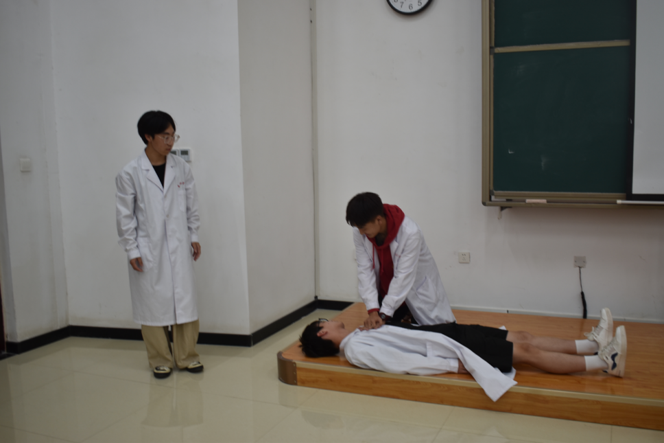 在理论讲解环节,临床技能社团的成员重点强调了心肺复苏的重要性,并详细介绍了心肺复苏的步骤和注意事项。随后在实操环节,社员指导同学们进行心肺复苏的模拟操作,并对同学们的疑问进行了耐心解答。