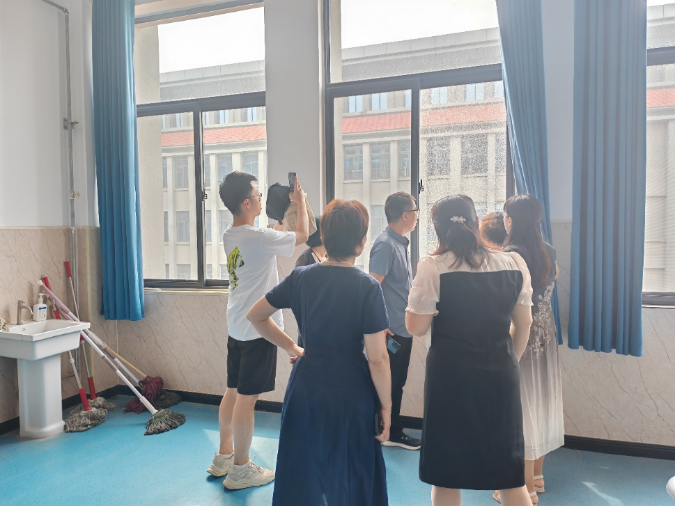 会后组织大家一同前往临床实训室进行新学期上课前实验室检查,其中发现外科实训室326窗户有裂碎迹象,立马上报物业服务群,及时处理,杜绝安全隐患。内科实训室、外科实训室和妇儿实训室的物品归类,摆放整齐,均已准备妥当,等待学生上课。其余无异常。