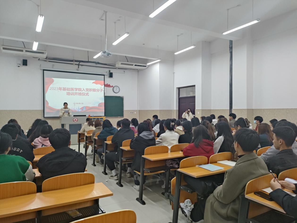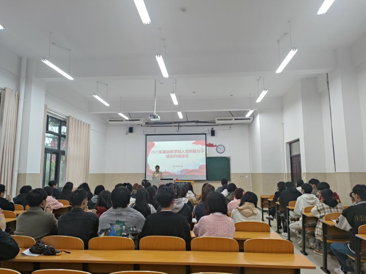 为深入学习贯彻党的二十大精神,进一步加强入党积极分子对党的认识,提高入党积极分子的思想政治觉悟,严把党员“入口关”和“质量关”。基础医学院于4月23日至5月29日举办2023年入党积极分子培训班。学生党支部组织委员曹琳珊主持开班仪式并作动员讲话,党支部全体成员和入党积极分子参加。