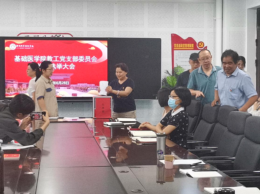 按照校党委工作指示,经报请基础医学院党总支研究通过,6月28日下午,中共洛阳职业技术学院基础医学院教工党支部委员会换届选举大会在基础医学实训楼213会议室顺利举行。基础医学院教工党支部全体党员参加会议,会议由李笑雯主持。