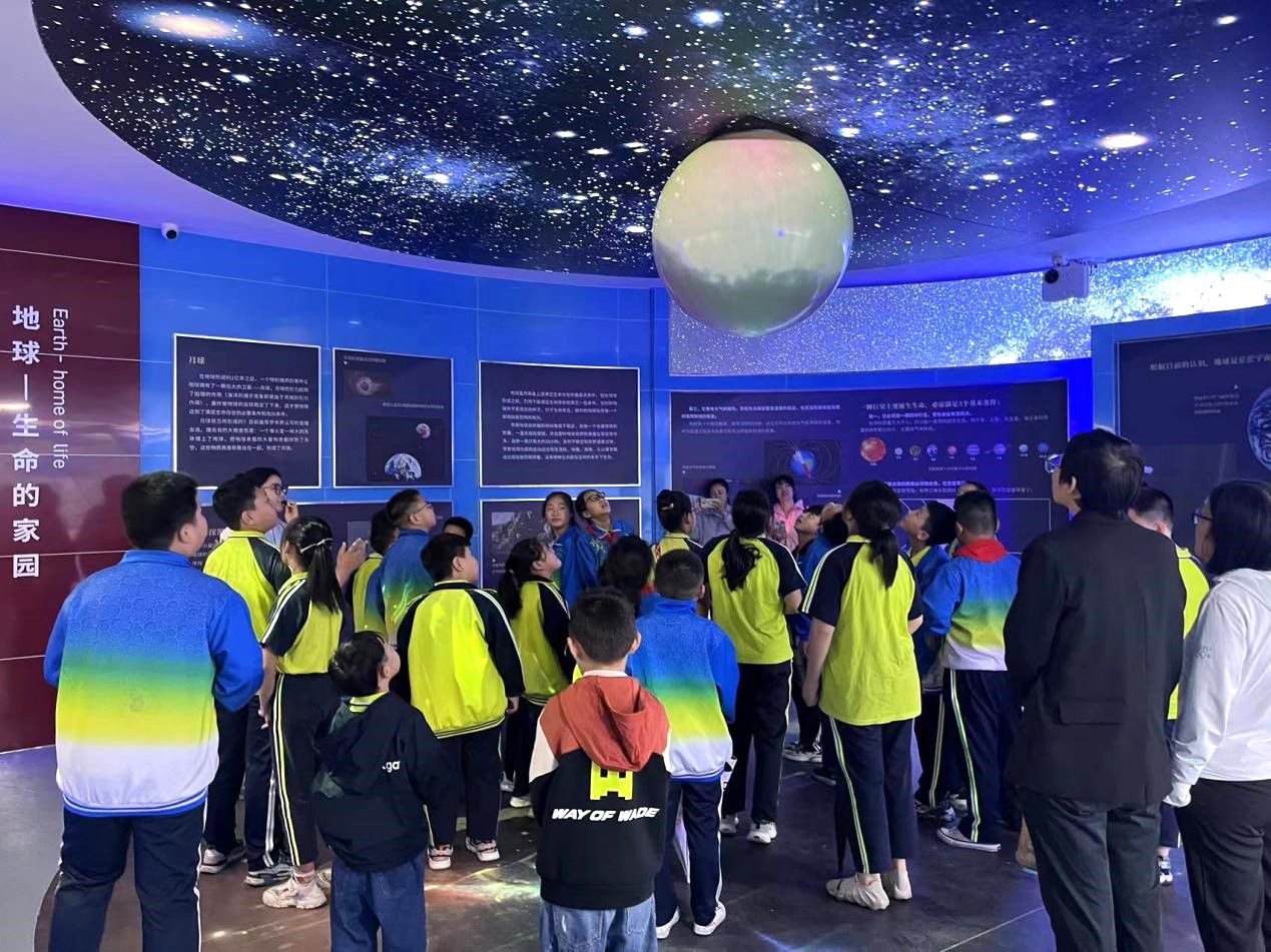在讲解员的带领下,小朋友们首先来到地球-生命的家园展厅,通过球形屏的投影看到了地球的全貌以及演变,讲解员通过趣味而通俗的口吻为小朋友们讲授万物并育而不相害,道并行而不相悖的生命科学道理,传播我们要携手努力,保护我们的家园,从身边点滴小事做起的精神。