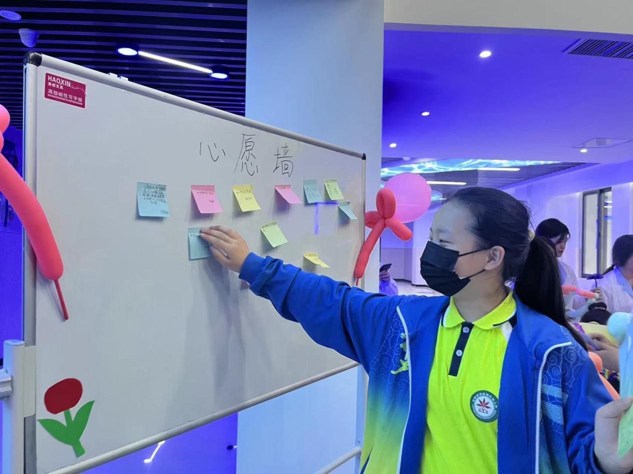 参观结束后,小朋友们在讲解员的带领下来到序厅,参与各类有趣的活动并抽奖领取此次活动的纪念品,还在心愿墙上留下自己的心愿。