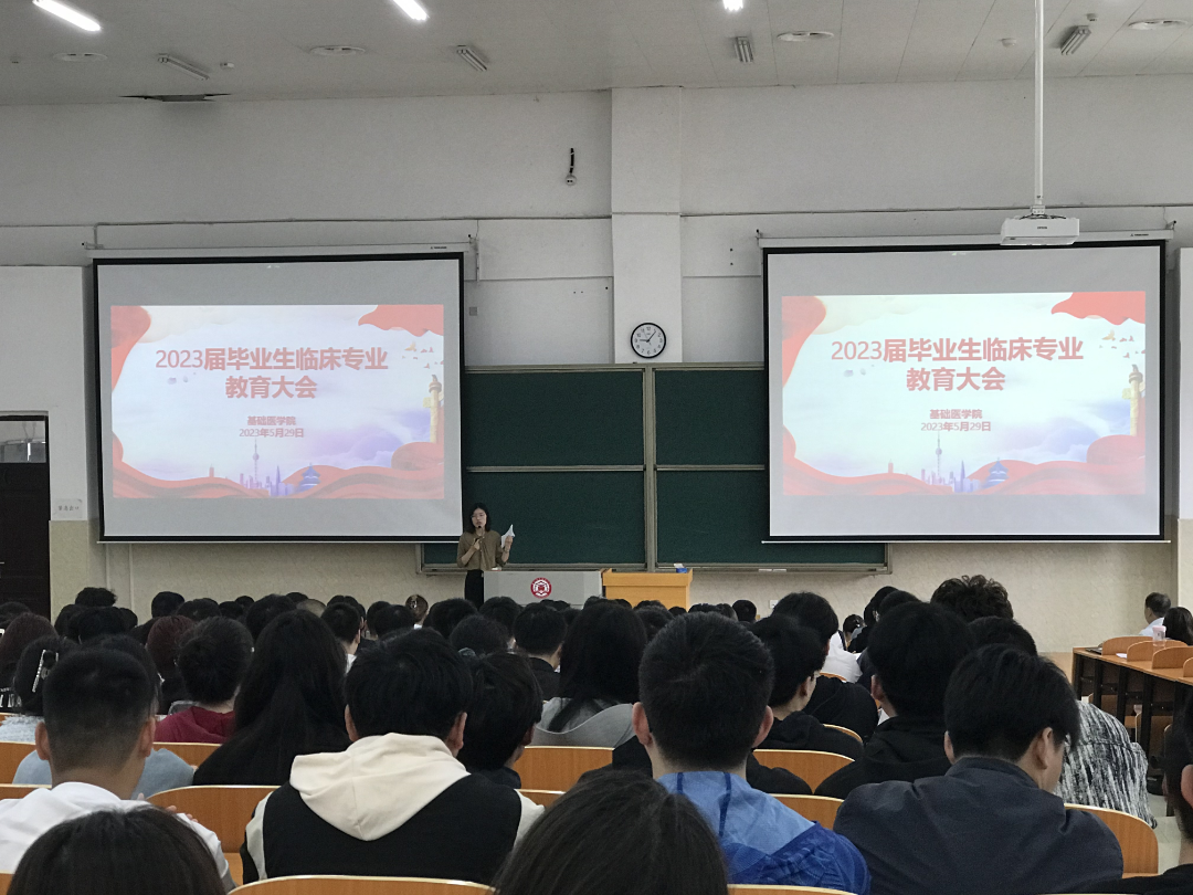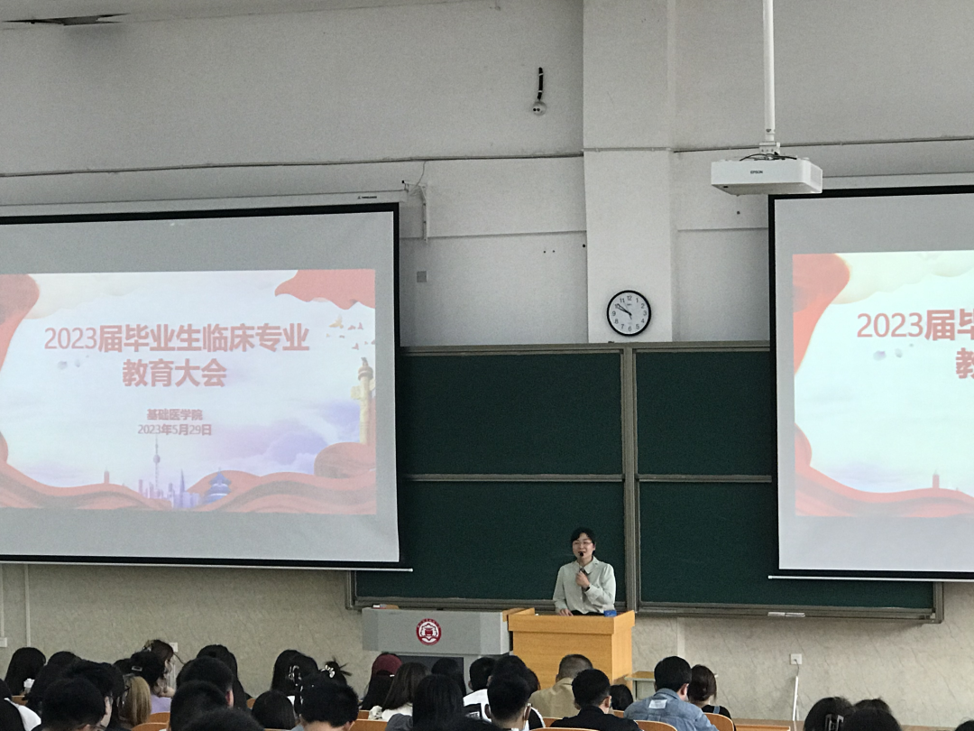 5月29日上午,我院于3号教学楼410教室召开2023届毕业生专业教育大会。会议由党总支副书记李笑雯主持,基础医学院院长赵印震、党总支书记崔颜宏、教学办主任牛小艳、学工办主任曹琳珊出席本次会议,20级全体专兼职辅导员以及2023届全体毕业生参加。