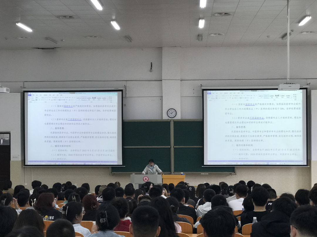 牛小艳就毕业考试安排以及规范化医师培训内容为同学们详细解读,希望全体毕业生高度重视、积极配合学院毕业考试、培训的开展;曹琳珊对毕业生即将开启新征程致以热烈祝贺,同时也嘱托同学们毕业前更要注意校园安全和文明。