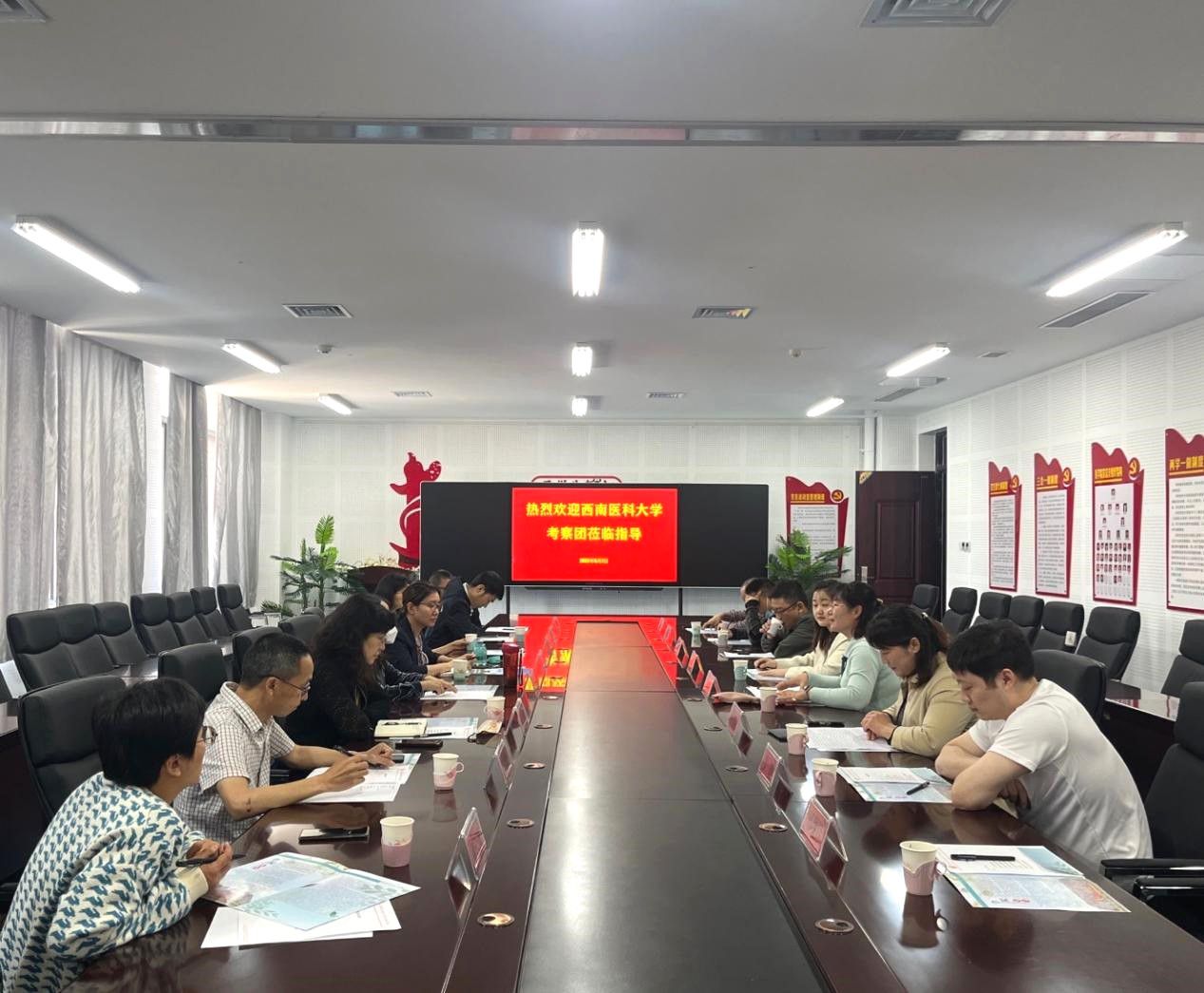 2023年5月7日上午10时,西南医科大学基础医学院党委书记阳静、药学院党委书记唐艳斌、基建后勤处处长龚虹、附院内科副主任黄纯兰 、人体解剖学实验室主任先德海、信息与教育技术中心教育技术王静一行13位领导莅临我校进行调研考察活动。我校基础医学院党总支书记崔颜宏、副院长杜学利陪同参与此次调研活动。