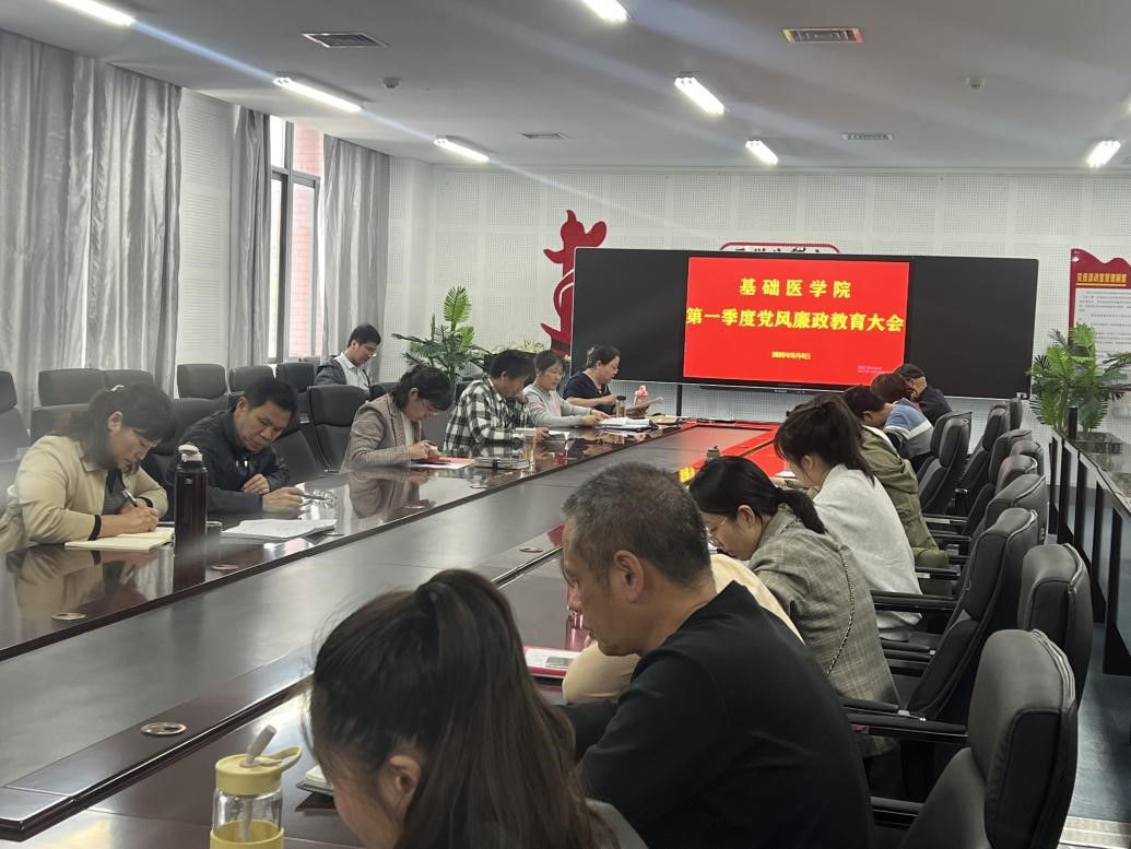 为深入学习贯彻党的二十大精神,持续推进全面从严管党治检向纵深发展,5月4日下午,基础医学院党总支召开2023年第一季度党风廉政建设工作会议,基础医学院党总支书记崔颜宏主持会议,基础医学院全体党员参加。