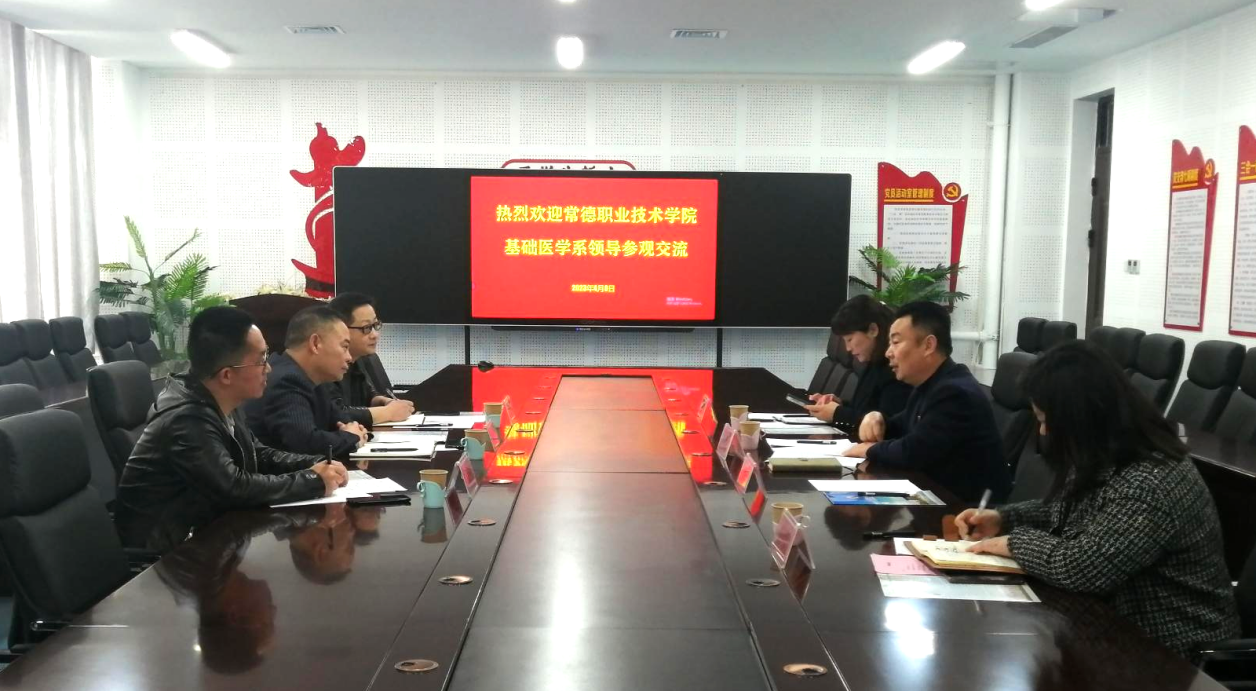 2023年4月6日,常德职业技术学院基础医学系主任刘毅勇、副主任唐峰、解剖教研室主任吴庆明莅临我校进行参观交流。我校基础医学院党总支副书记李世恩、副院长崔颜宏、副院长杜学利、解剖教研室主任张明晓一同参与此次调研会议。