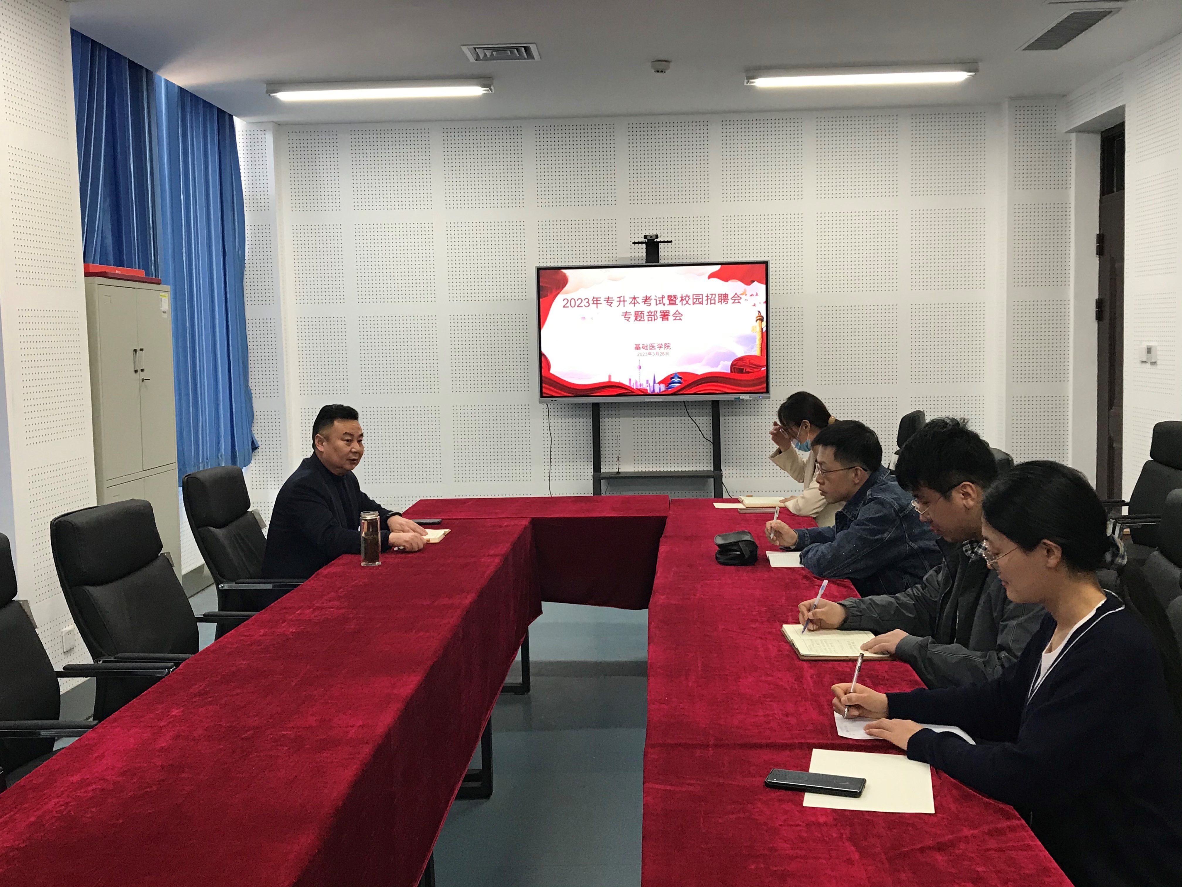 3月28日上午,基础医学院召开专升本考试暨校园招聘会专题工作部署会议,传达学校关于专升本考试工作的部署。2020级毕业班全体辅导员参加,会议由基础医学院党总支副书记李世恩主持。