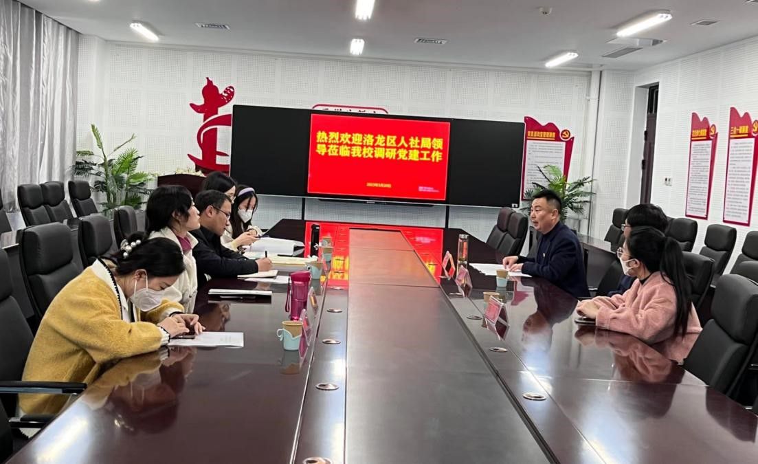 3月20日下午,洛龙区人社局副局长解作纯一行到我院进行党建工作调研,调研的重点是如何创建“五星支部”。校工会主席徐阁、医学院党总支副书记李世恩、组织部田研华参加了调研座谈会。
