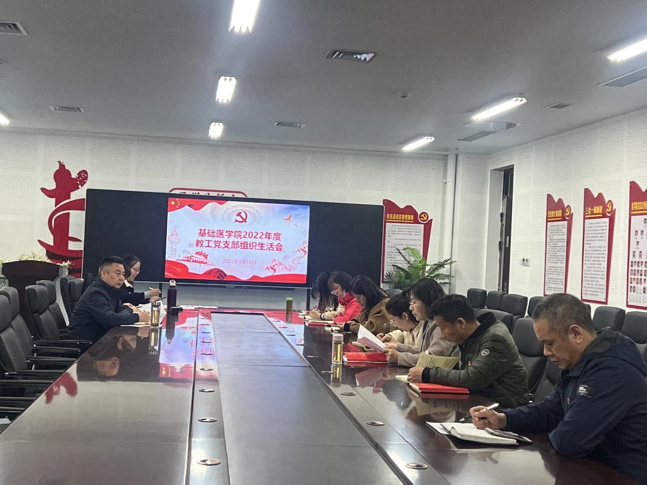 3月16日上午,基础医学院教工党支部在基础医学实训楼213会议室召开2022年度组织生活会和民主评议党员工作会议。基础医学院党总支副书记李世恩出席会议并指导工作。