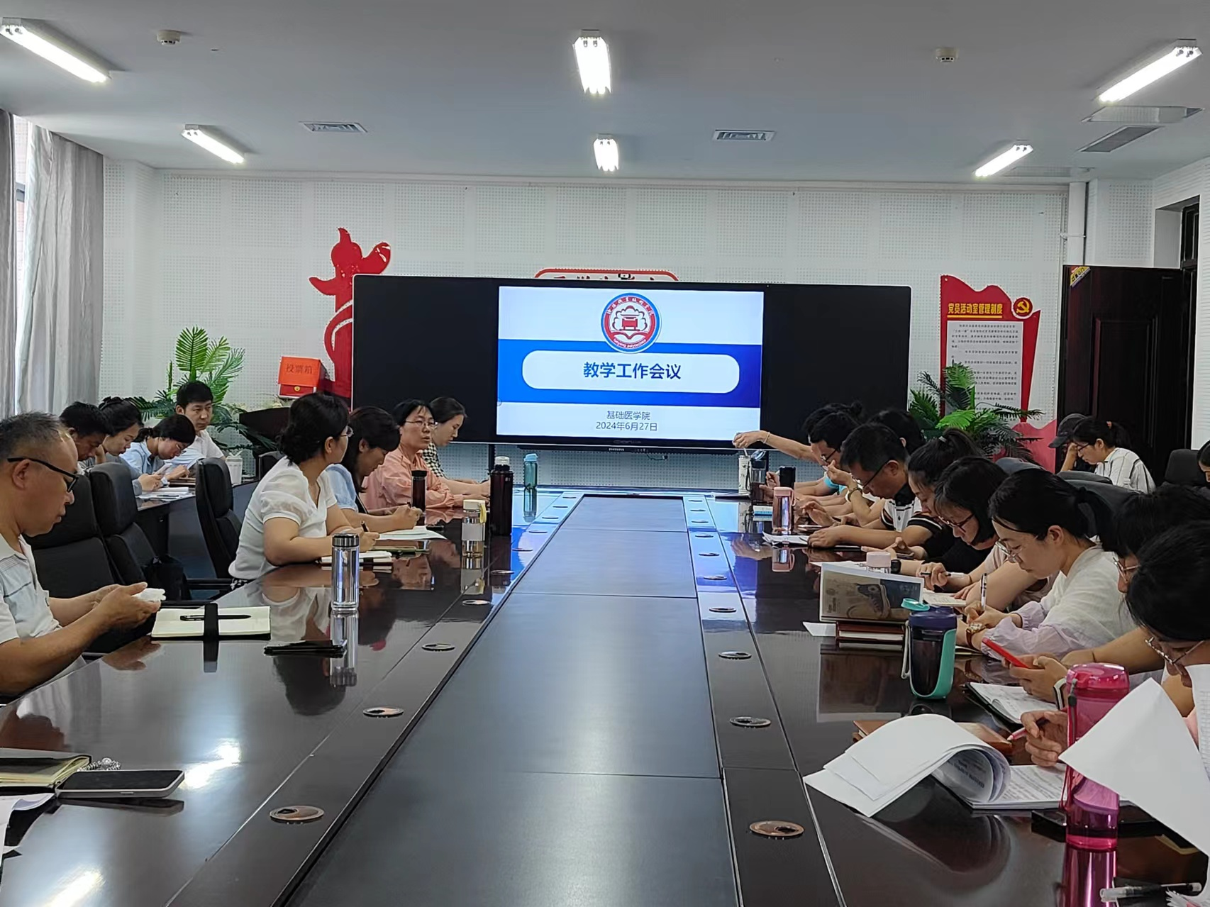 6月27日下午,基础医学院在8号楼213会议室召开期末教学工作例会。基础医学院党总支书记崔颜宏、副院长杜学利出席会议,会议由综合办主任杨俊娜主持。