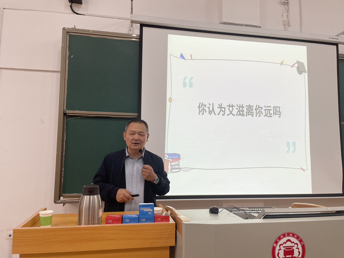接下来,王作伟给同学们介绍了大学生医保政策。他指出大学生医保不仅能够满足学生日常的门诊医疗需求,还能够对学生们可能面临的住院医疗费用问题提供保障。随后,他又给同学们开展了“关爱青少年,预防艾滋病”的主题教育,并强调了预防艾滋病至关重要性。