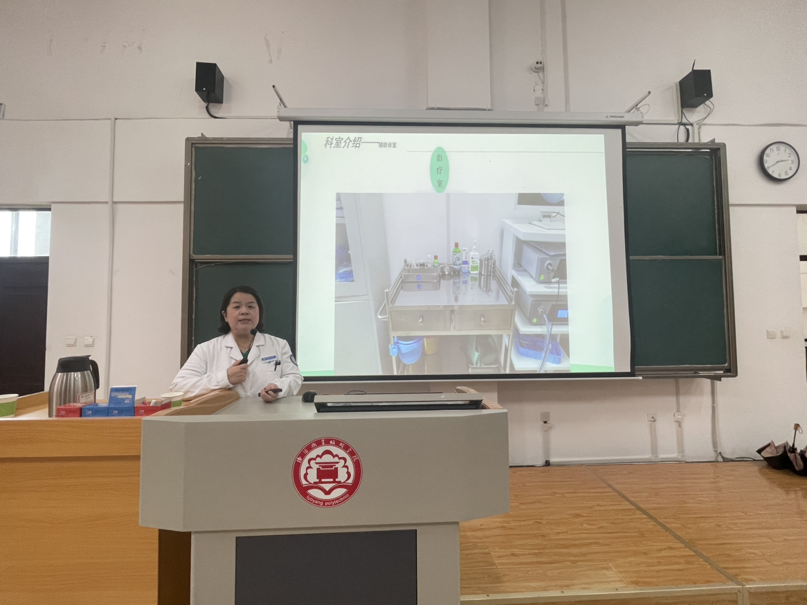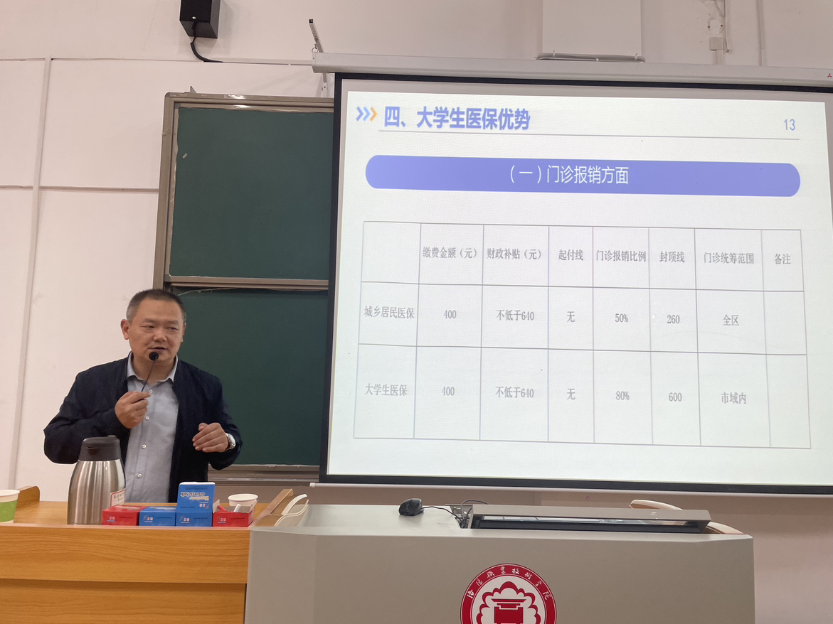 讲座伊始,闫华医生介绍了校医院的基本情况。他表示,校医院主要是负责组织实施学院教职员工和学生的医疗、保健、预防工作及新生入学体检工作;完成大学生医保门诊统诊疗和校内门诊报销工作;协调校内重大活动的医疗保健工作;负责学校传染病预防、控制和报告工作。