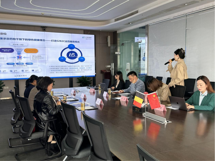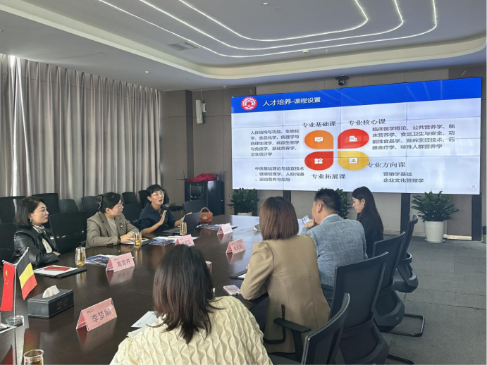 随后,双方在公司会议室举行了座谈交流会。汇博医疗集团董事长朱天钢及公司各业务负责人参加了会议。会议上该公司人力资源总监详细介绍了公司的发展历程、核心业务,未来规划以及对医学营养专业人才的需求和期望。崔颜宏介绍了我校基本情况,医科的专业设置及发展目标。王玉霞介绍了医学营养专业的课程设置、学生培养情况和师资实训条件。双方就学生实习、就业前景、课程开发等问题进行了初步的探讨。