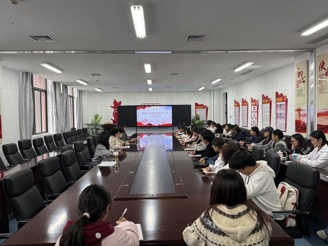 11月11日中午,基础医学院在8-213会议室召开学生安全教育主题交流座谈会。会议由曹琳珊主持,崔颜宏、李笑雯出席会议,辅导员以及23、24级学生代表参会。
