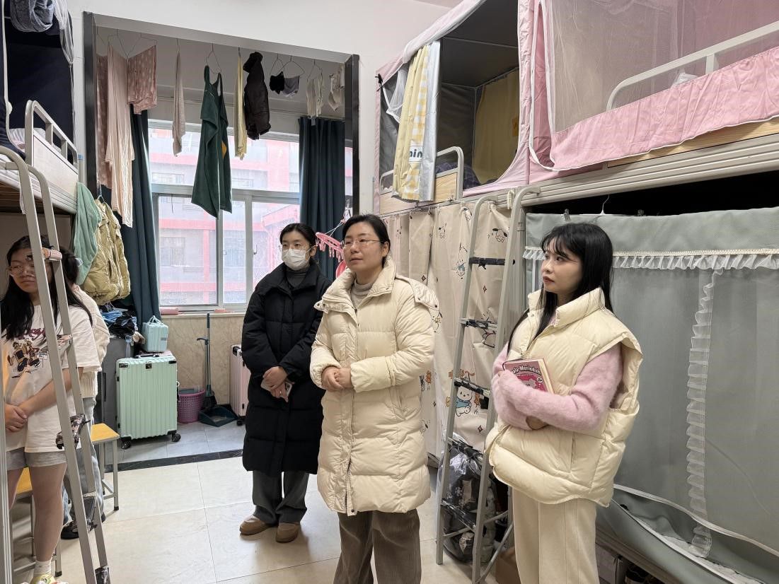 会议结束后,学院领导带队走访学生宿舍开展安全排查工作。在走访中,领导们还与学生进行了亲切交流,询问他们的学习、生活情况,并重点强调了假期安全的重要性。