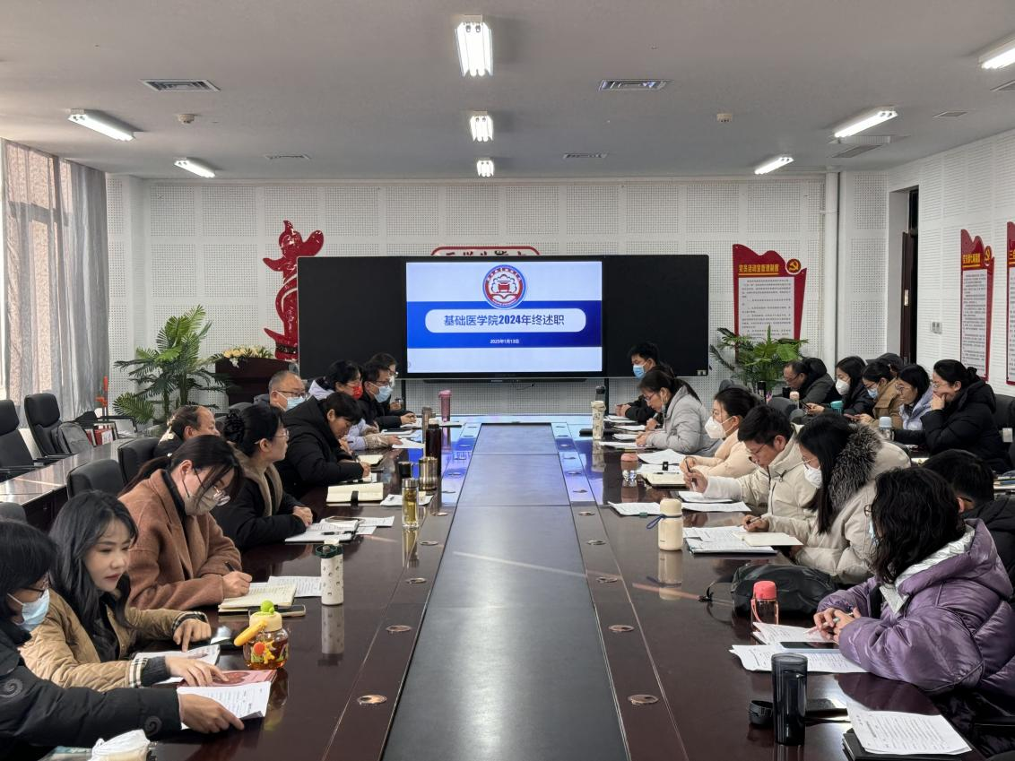 1月13日,基础医学院在8号实训楼213会议室召开2024年终述职大会。此次大会旨在全面总结过去一年的工作成效,明确未来的发展方向和目标,进一步激发全体教职工的工作热情和创造力。