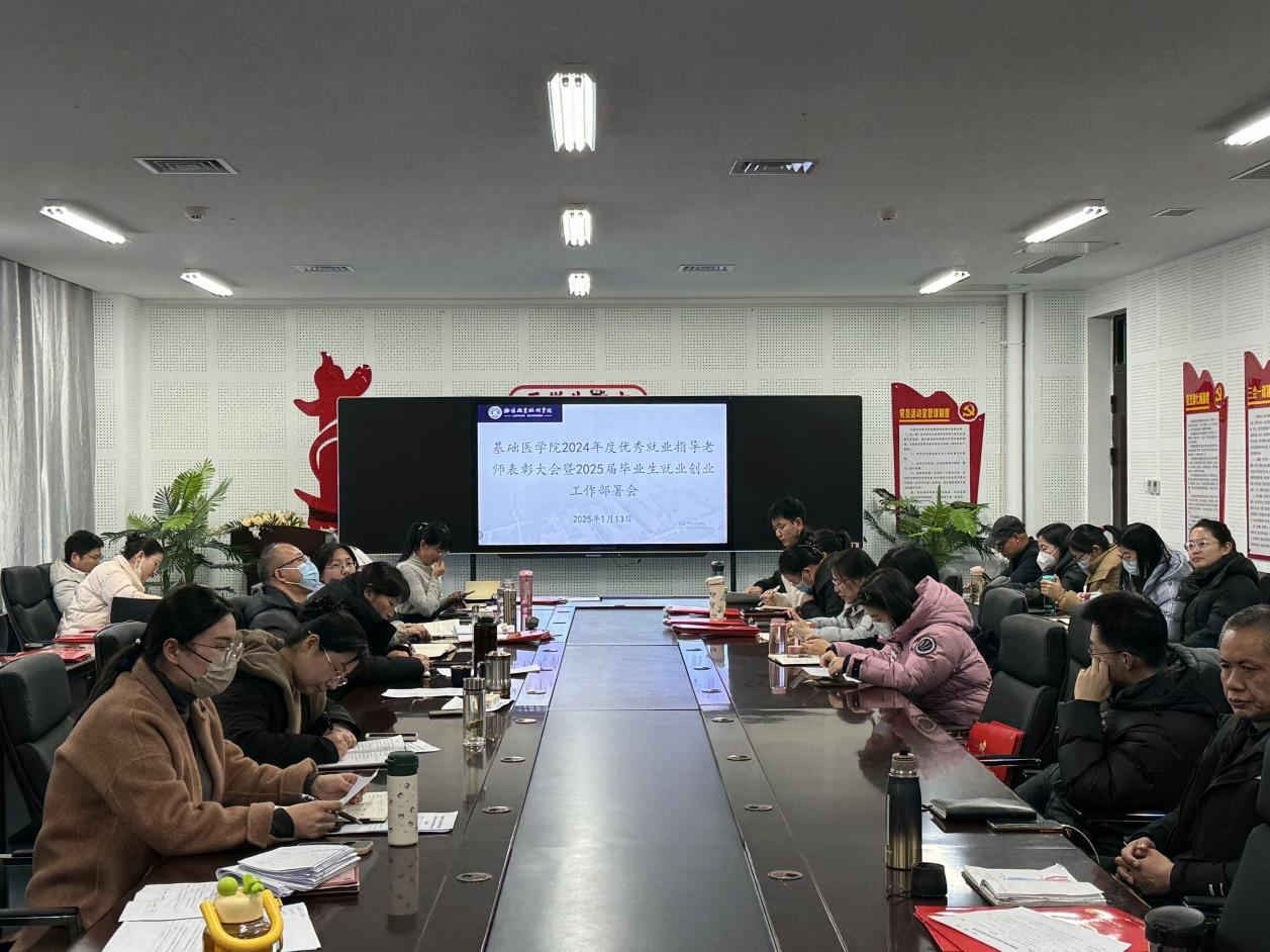 1月13日,基础医学院在8—213会议室隆重召开了2024年度优秀就业指导老师表彰大会暨2025届毕业生就业创业工作部署会。此次会议旨在表彰在过去一年中在就业指导工作中表现突出的老师,并对2025届毕业生的就业创业工作进行动员和部署,以确保25届毕业生能够顺利就业、高质量就业。