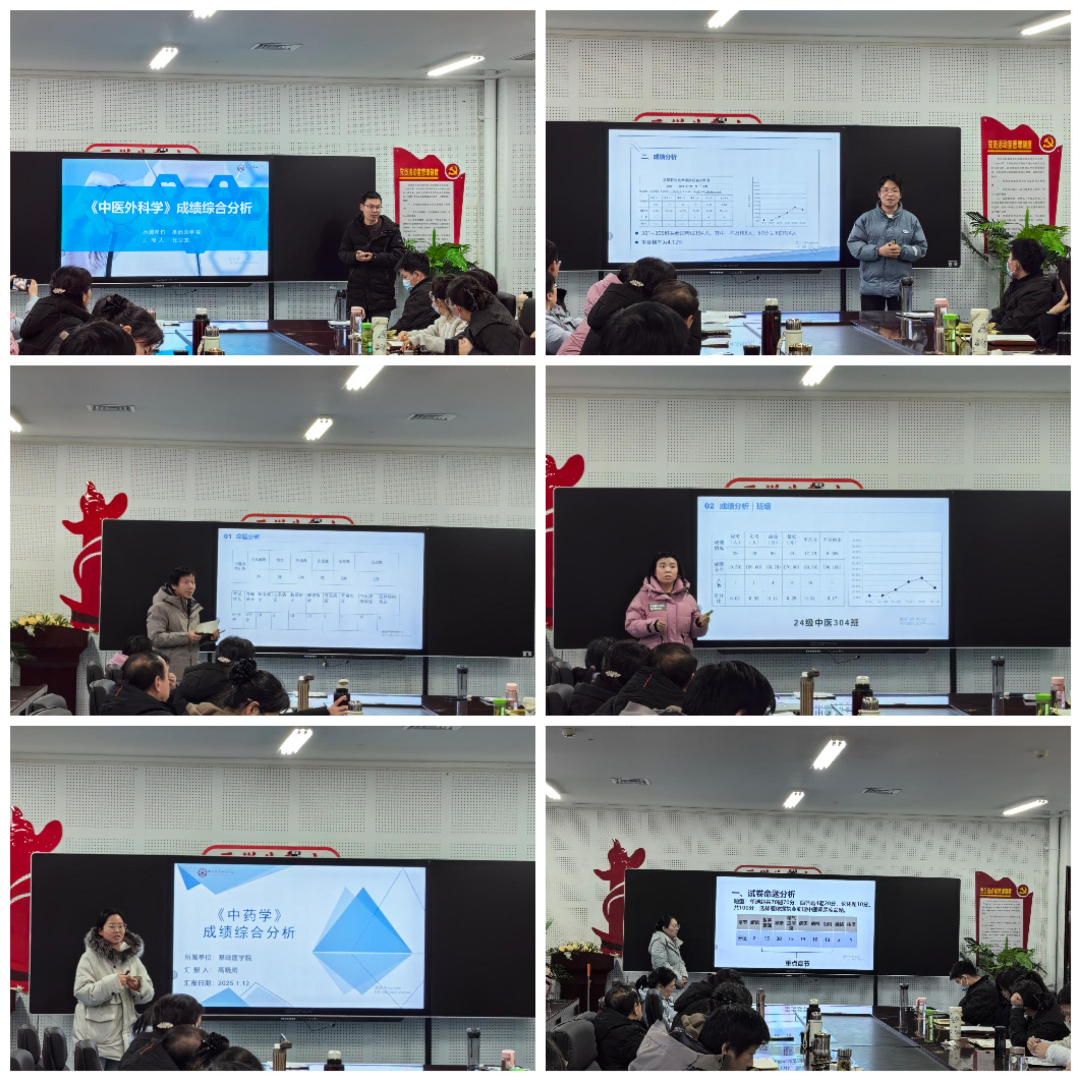 会上,解剖教研室、内科教研室、外科教研室和中医教研室负责人分别从考试命题、考试成绩、成绩分析等方面对《人体解剖与组织胚胎学》《预防医学》《内科学》《诊断学》《外科学》《中医基础理论》《中医儿科学》《中药学》《中医内科学》《中医外科学》10门课程的期末考试成绩进行了深入分析,分析原因,各位任课教师结合自身的教学实践,提出问题并给出改进意见。