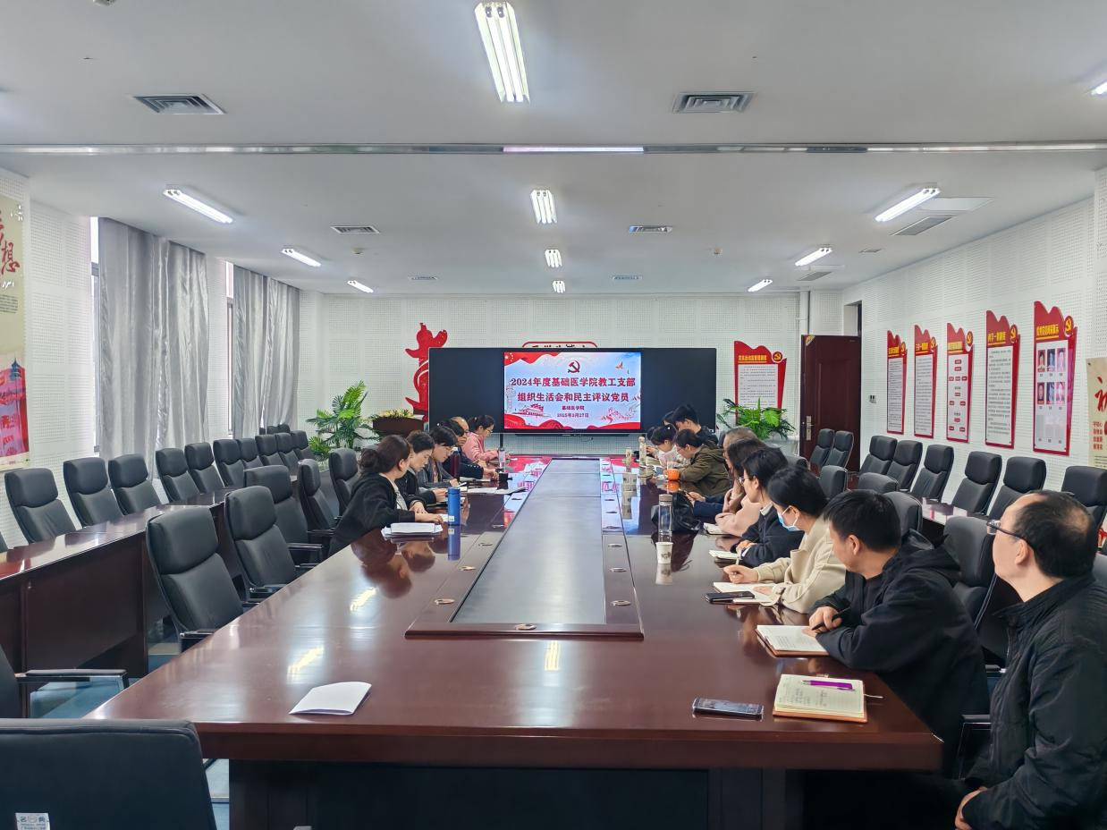 为深入学习贯彻习近平新时代中国特色社会主义思想,巩固深化党纪学习教育成果,基础医学院于3月27日下午4点在8-213会议室召开教工支部组织生活会和民主评议党员会议,会议旨在强化党组织凝聚力,提升党员责任意识,为学院高质量发展提供坚实保障。