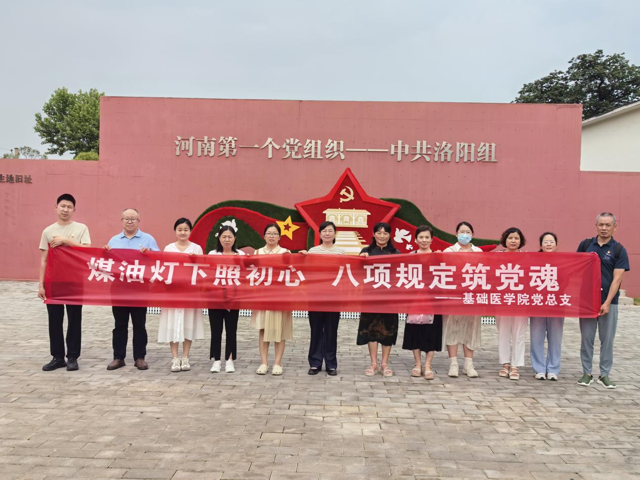 为深入贯彻中央八项规定精神学习教育要求,6月27日下午,基础医学院党总支组织党员教师赴中共洛阳组诞生地纪念馆开展“煤油灯下照初心,八项规定筑党魂”主题党日活动。通过实地研学追寻红色记忆,强化党性修养。