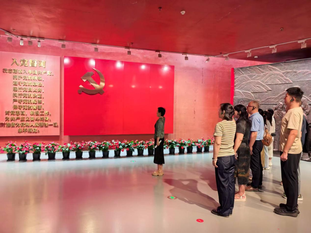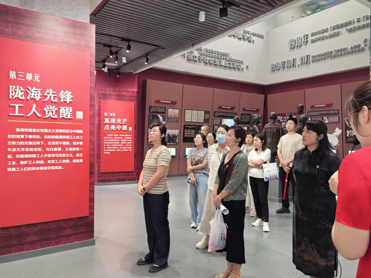 在庄严肃穆的宣誓大厅,教工党支部书记带领全体党员重温入党誓词,铿锵誓言回荡在纪念馆内,彰显着新时代共产党员的坚定信仰。随后,同志们依次参观了“黎明曙光”“工运怒涛”“初心启航”“薪火相传”四大主题展区,通过800余幅历史图片、160余件实物展品,系统了解河南省第一个党组织——中共洛阳组的成立背景及陇海铁路大罢工等革命事迹。