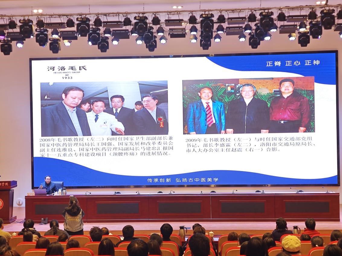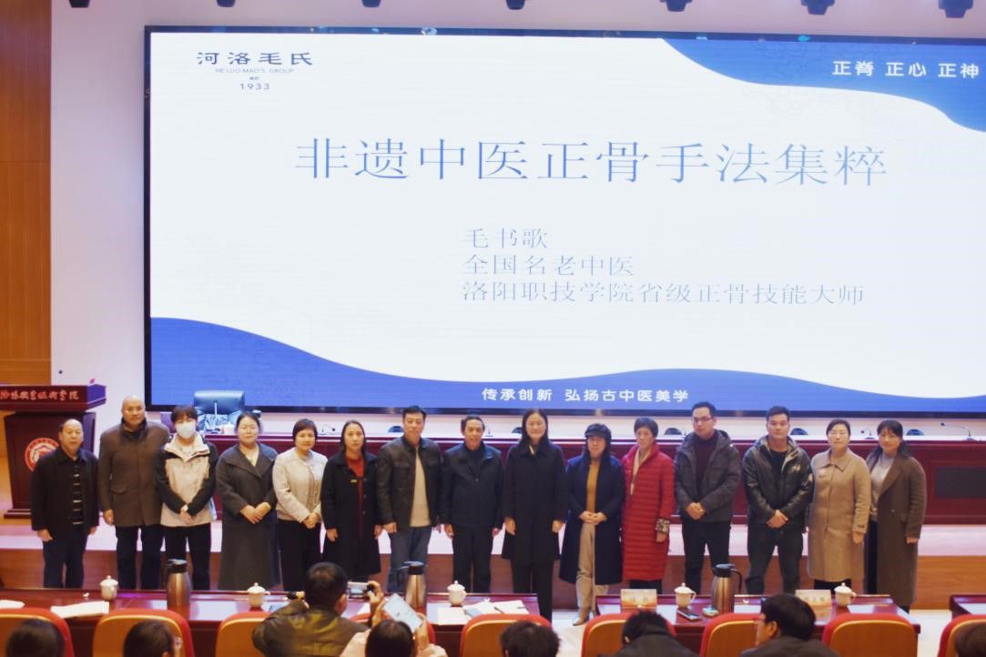 为弘扬中华优秀传统文化,推动国家级非物质文化遗产的校园传承,2025年11月27日下午,由党委宣传统战部主办、基础医学院承办的“洛职大讲堂”系列讲座——“非遗中医正骨手法集粹”在大学生活动中心一楼报告厅成功举办。本次活动特邀国家级非物质文化遗产“洛阳正骨(平乐正骨术)”代表性传承人、我院名誉院长毛书歌教授担任主讲,为广大师生带来一场中医正骨技艺的学术盛宴。副校长任扬,基础医学院党总支书记崔颜宏、副院长杜学利出席,基础医学院院长赵印震主持讲座。