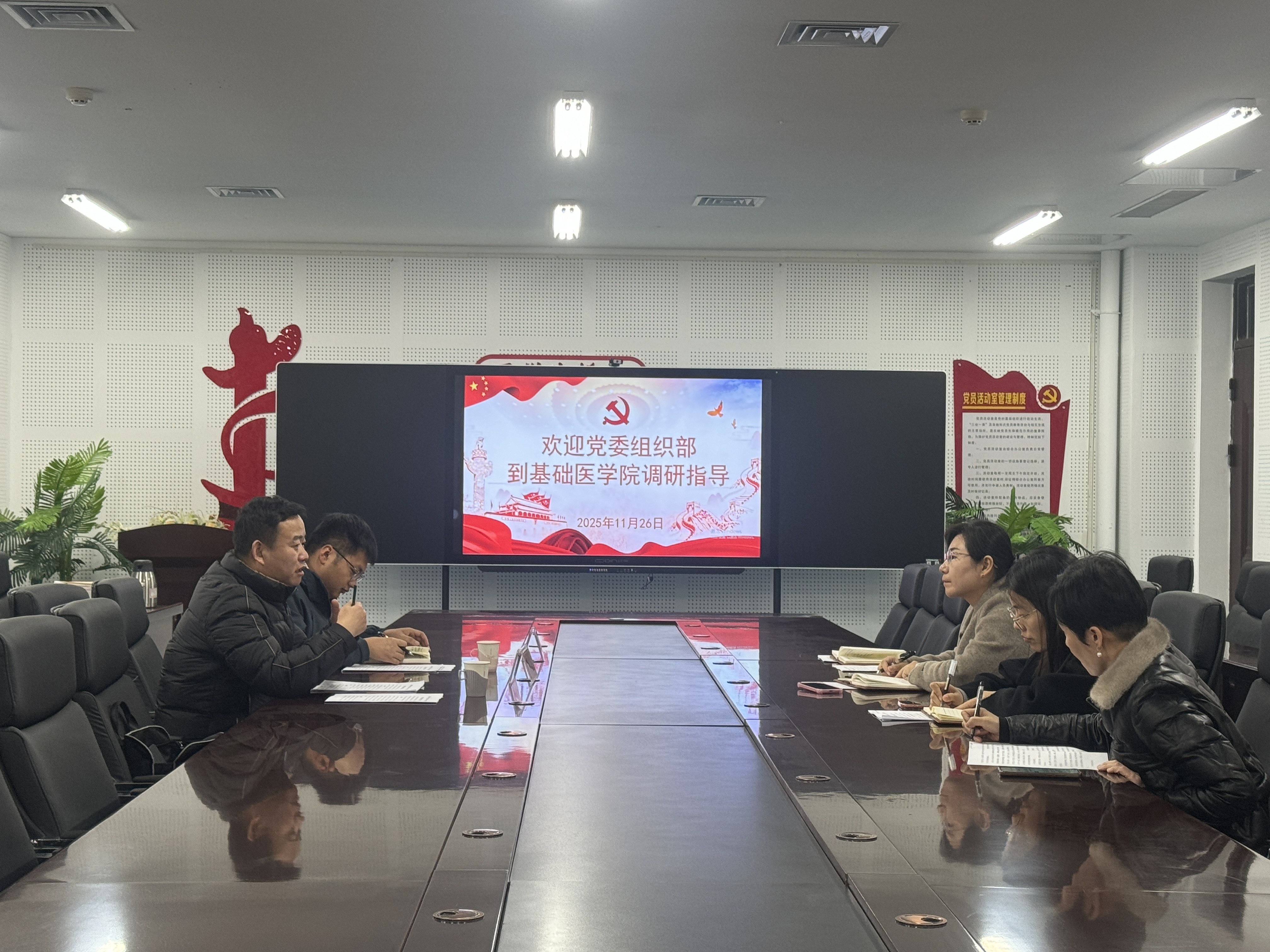 为深入贯彻落实新时代党的建设总要求,持续创新党建工作模式,扎实推进医教协同育人机制走深走实,11月26日下午,党委组织部副部长周吉霖深入基础医学院,就党组织联建共建工作开展专题指导。基础医学院党总支书记崔颜宏及党总支支委参加会议。