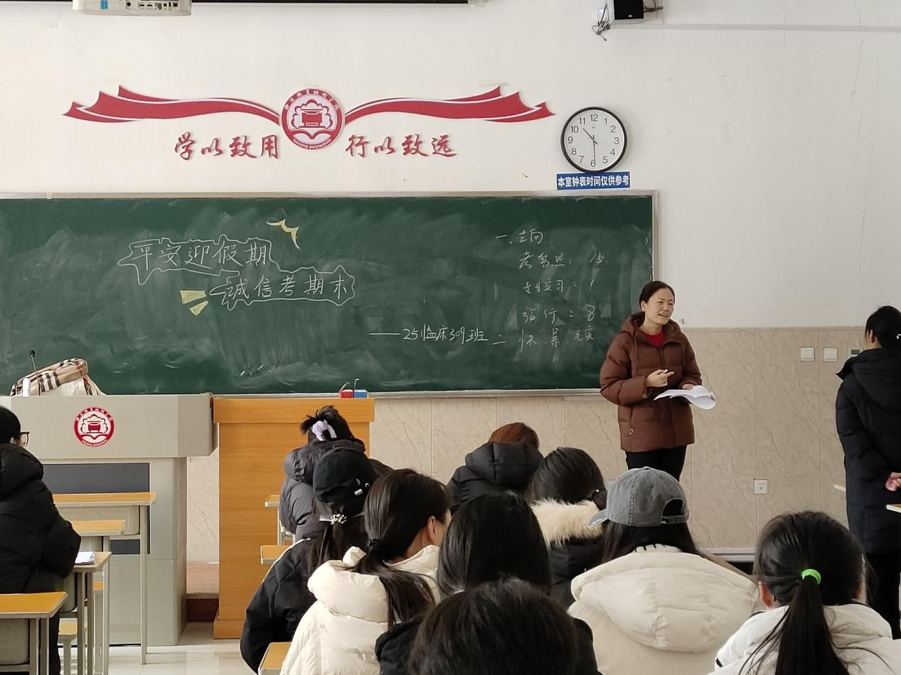 1月20日,党委委员、副校长任扬作为成长导师走进联系班集体——基础医学院25级临床(定向)309班,开展以“平安迎假期、诚信考期末”为主题的班会。