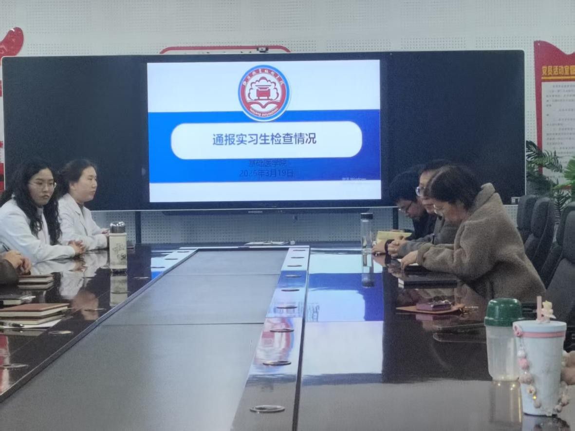 3月19日下午,基础医学院在8号楼213会议室召开了实习末实习检查工作汇报会。会议全面总结了本轮对实习生的技能考核情况,重点分析了学生在临床实践中的表现,并就如何进一步提升人才培养质量进行深入研讨。学院相关领导、临床教研室全体教师参加会议。