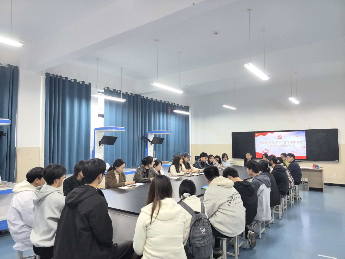 3月27日,基础医学院在8-304召开了2026年春季学期思想动态座谈会,本次会议旨在于切实了解学生学习生活情况,进一步加强师生们的交流沟通。基础医学院党总支副书记李笑雯、学工办主任曹琳珊、团总支书记翟一帆出席会议,专兼职辅导员以及各年级学生代表齐聚一堂,围绕学习、生活、就业等热点话题展开深入交流。