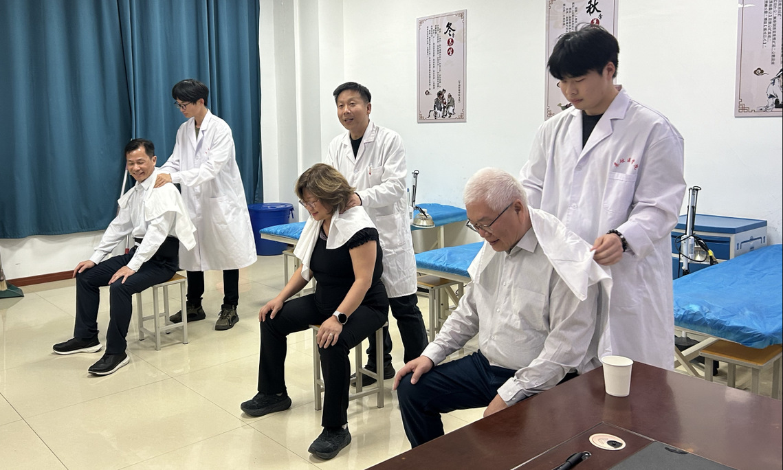 现场观摩过程中,北美大学一行对中医诊疗技术的精准性与实效性表示赞叹,并对中医“治未病”的理念及急救手法留下深刻印象。来访人员表示,此次交流不仅让他们感受到中医药技术的独特魅力,更体会到中医工作者以守护健康为己任的仁爱精神。
